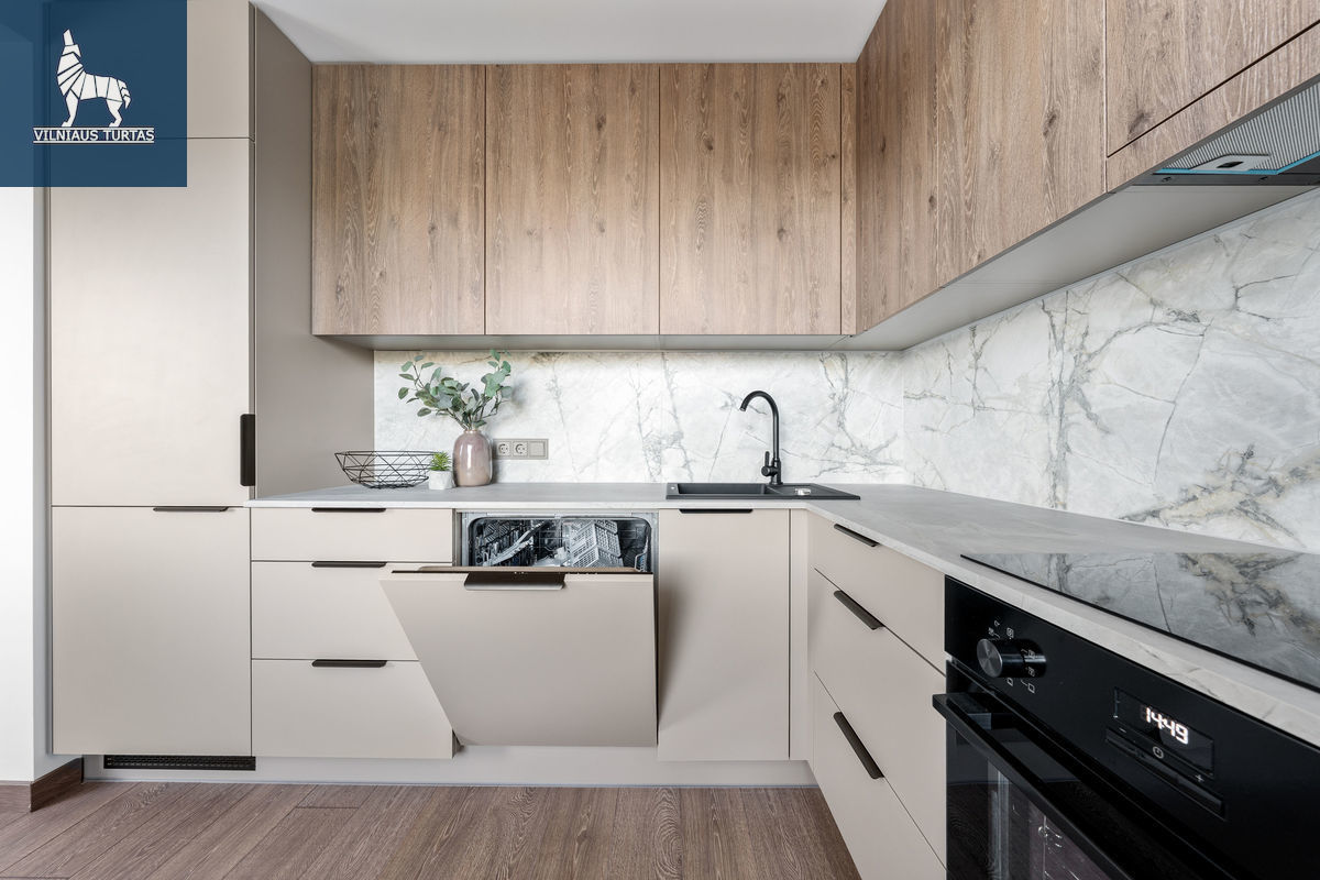 ■ Erdvi svetainė apjungta su valgomojo ir virtuvės zonomis, virtuvėje sumontuota kokybiška buitinė technika;