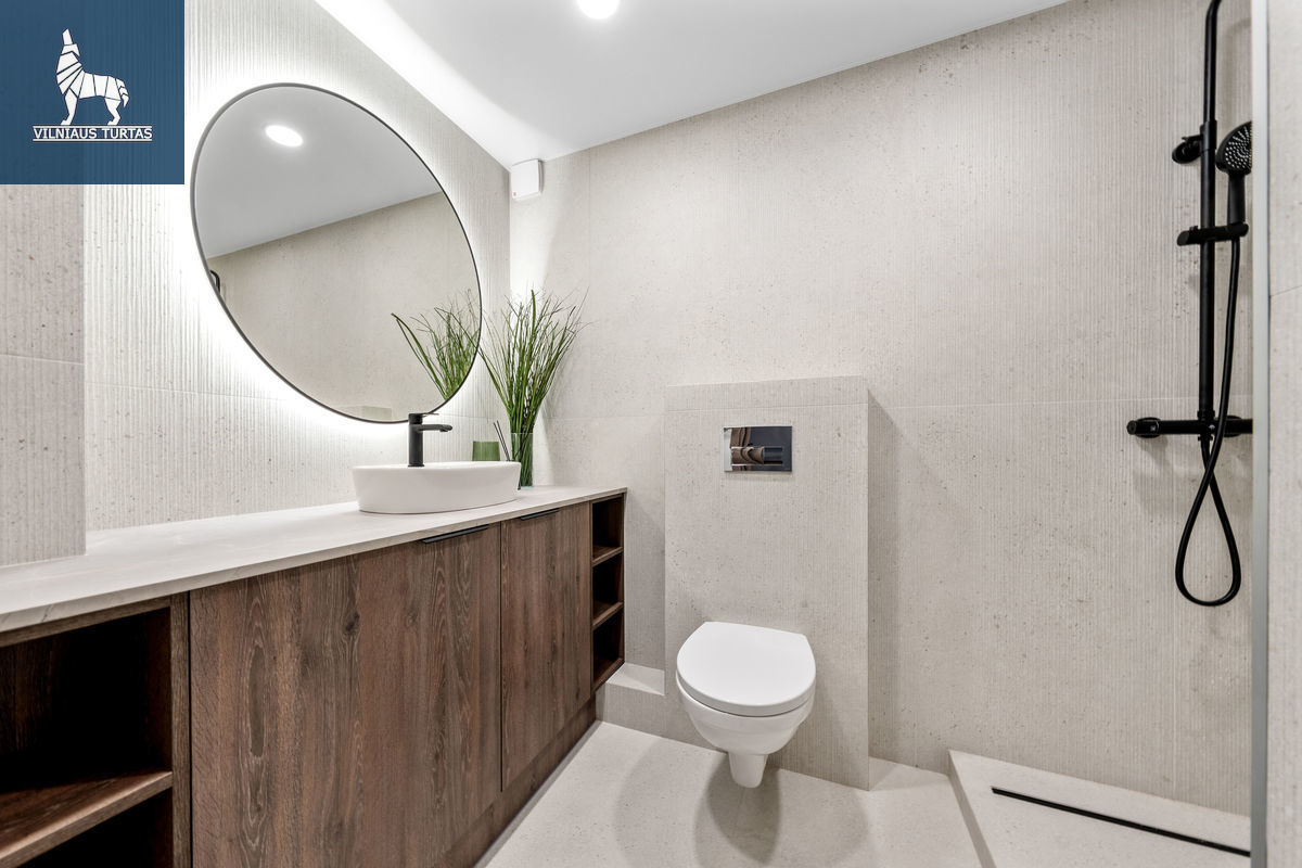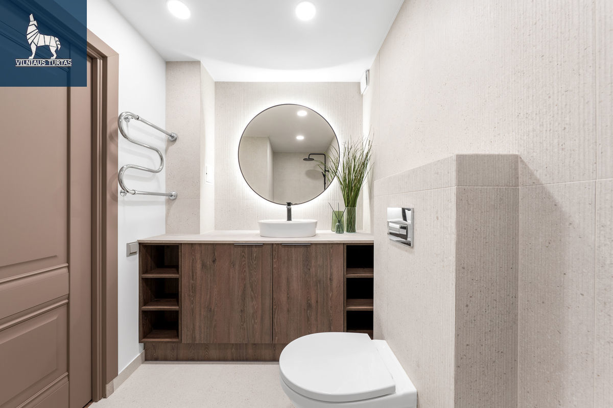 ■ Bute sumontuotos įtempiamos lubos su šiuolaikišku „LED” tipo apšvietimu;