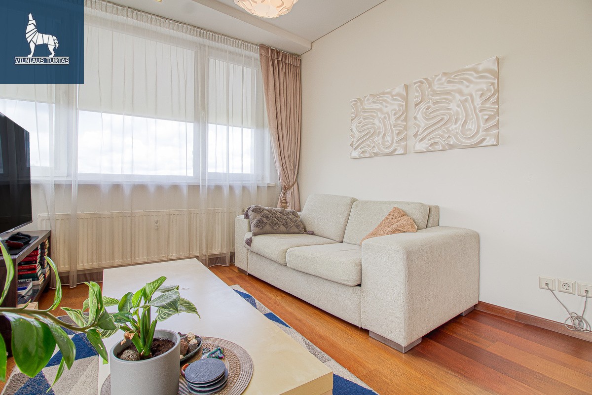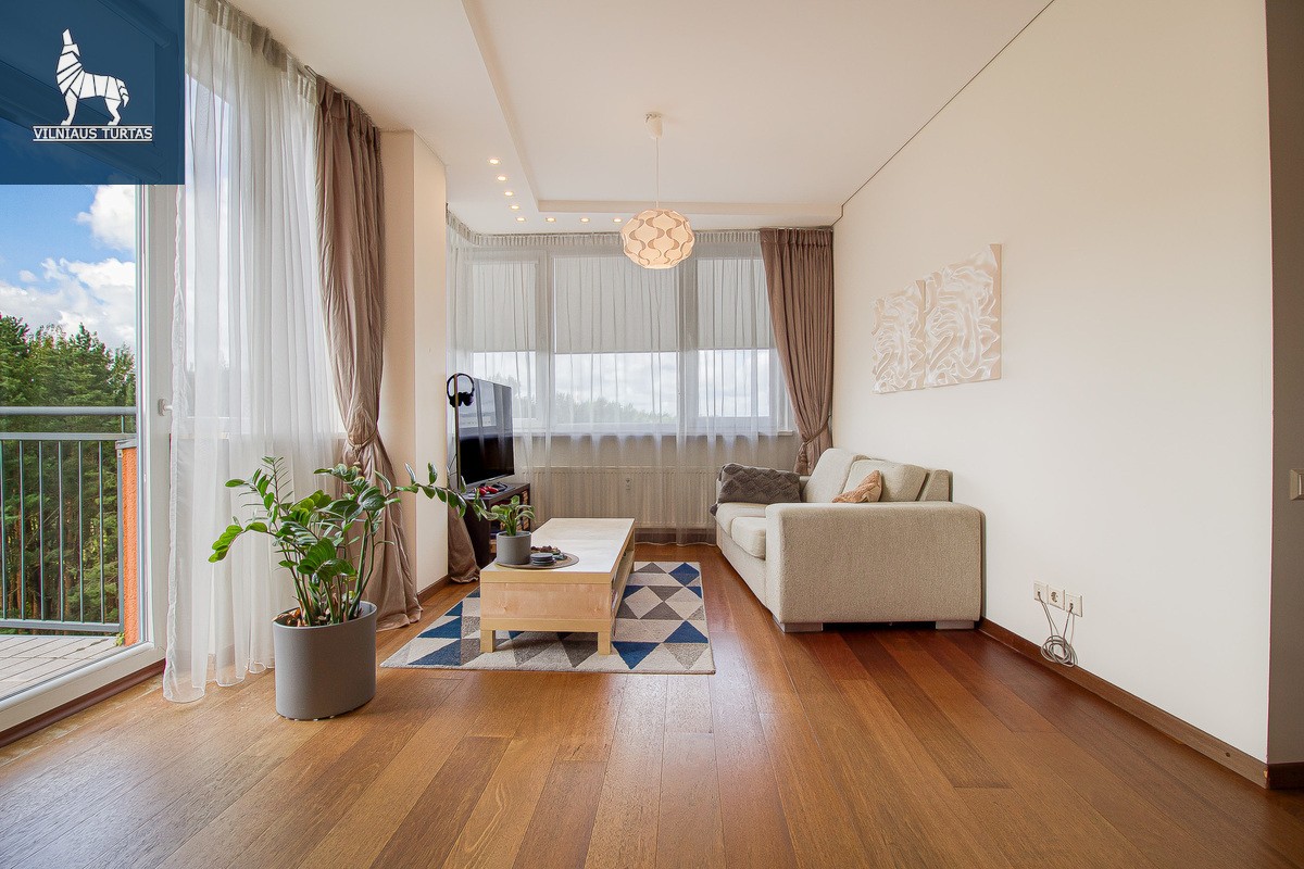 Ieškote jaukios vietos, kur galėtumėte ilsėtis po dienos darbų? Šis šviesus ir labai jaukus 49 kv. m butas Lazdynėliuose gali tapti jūsų naujais namais. Paskutinis aukštas, nuostabus vaizdas į mišką, pilnai įrengtas – tereikia atsinešti lagaminą! Įsikėlimas – nuo RUGSĖJO 1d.., apžiūras organizuojame jums patogiu metu.