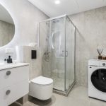 – Vonioje: dušas, wc, kriauklė, spintelė, veidrodis, skalbimo mašina.