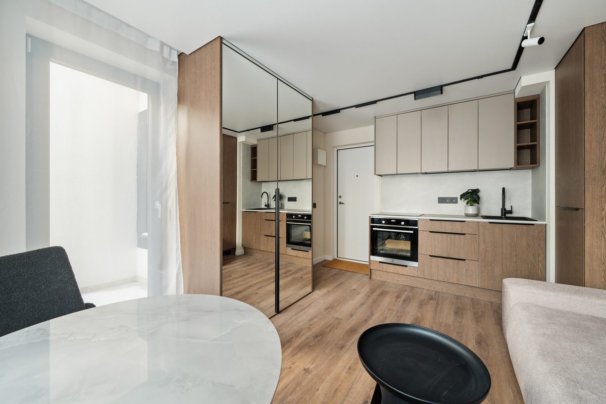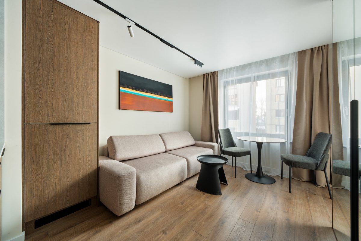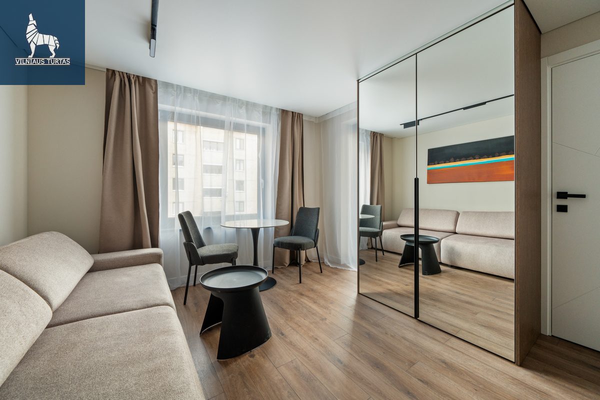 Butas įrengtas kokybiškai ir moderniai – viskas nauja, paruošta patogiam gyvenimui be jokių papildomų rūpesčių. Natūrali šviesa, šiltos spalvos ir švarus dizainas kuria lengvą, ramią atmosferą. Iš kambario patenkama į balkoną – puiki vieta rytinei kavai ar trumpam atsikvėpti po darbo dienos.
