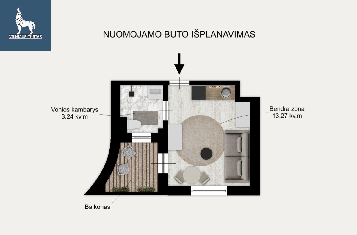 Nuomojamas butas Neužmirštuolių g. 10, Lazdynėliuose, Vilniuje, 16.51 kv.m ploto, 1 kambariai