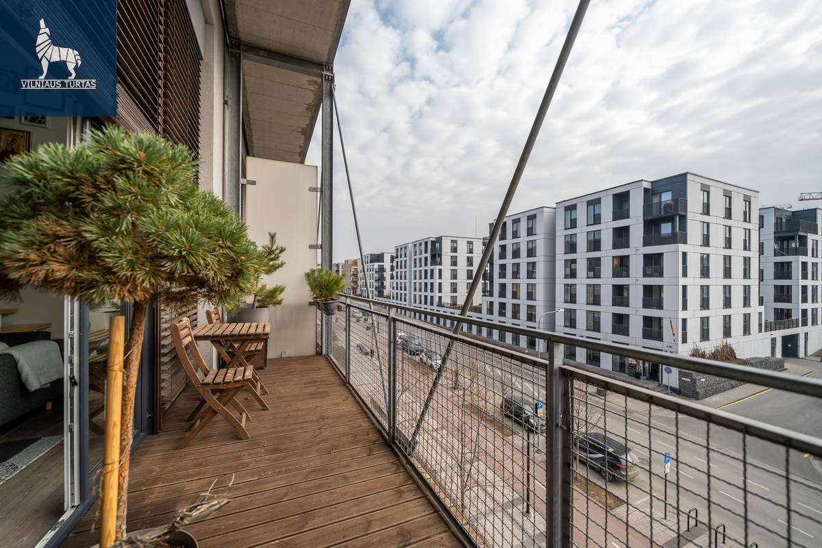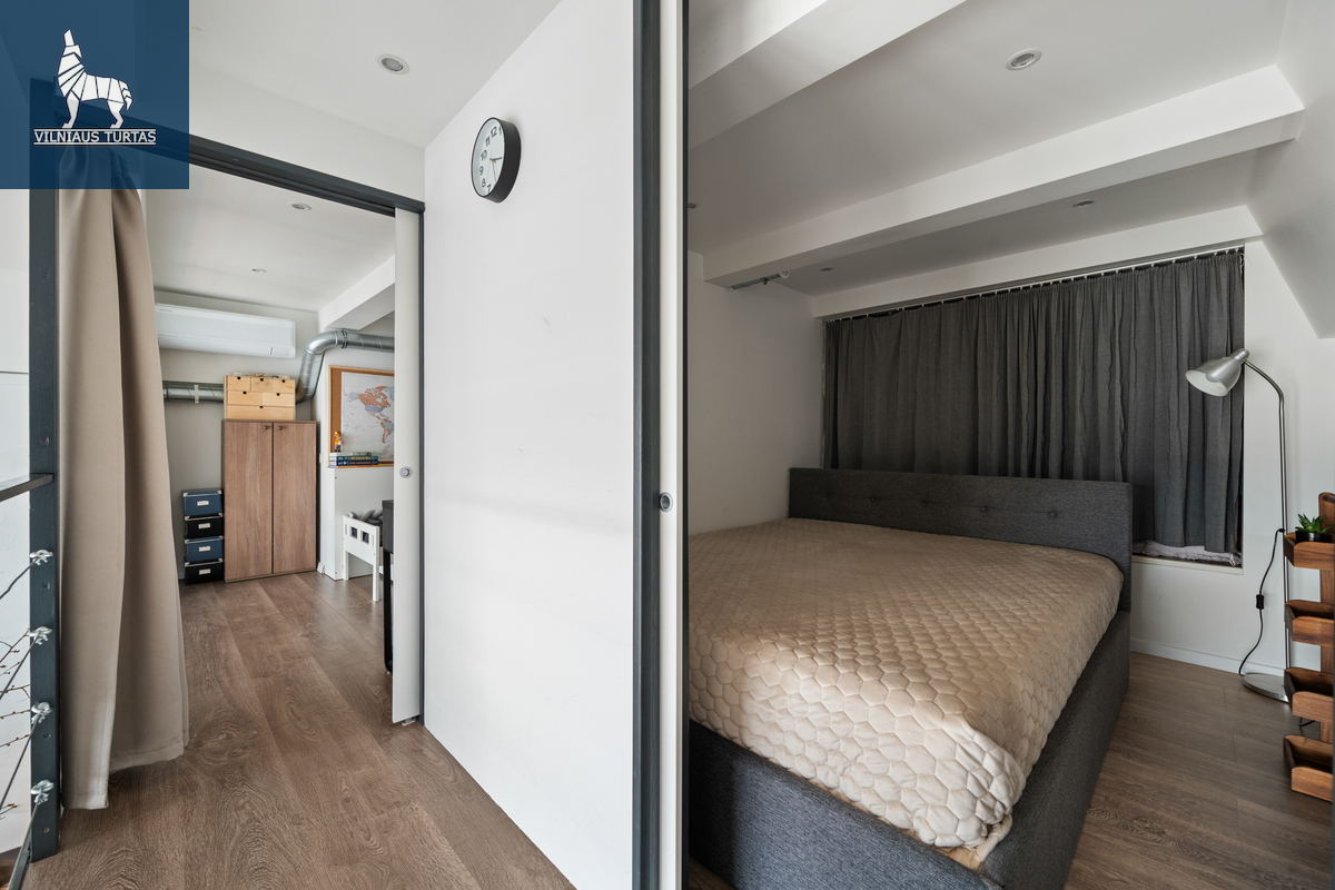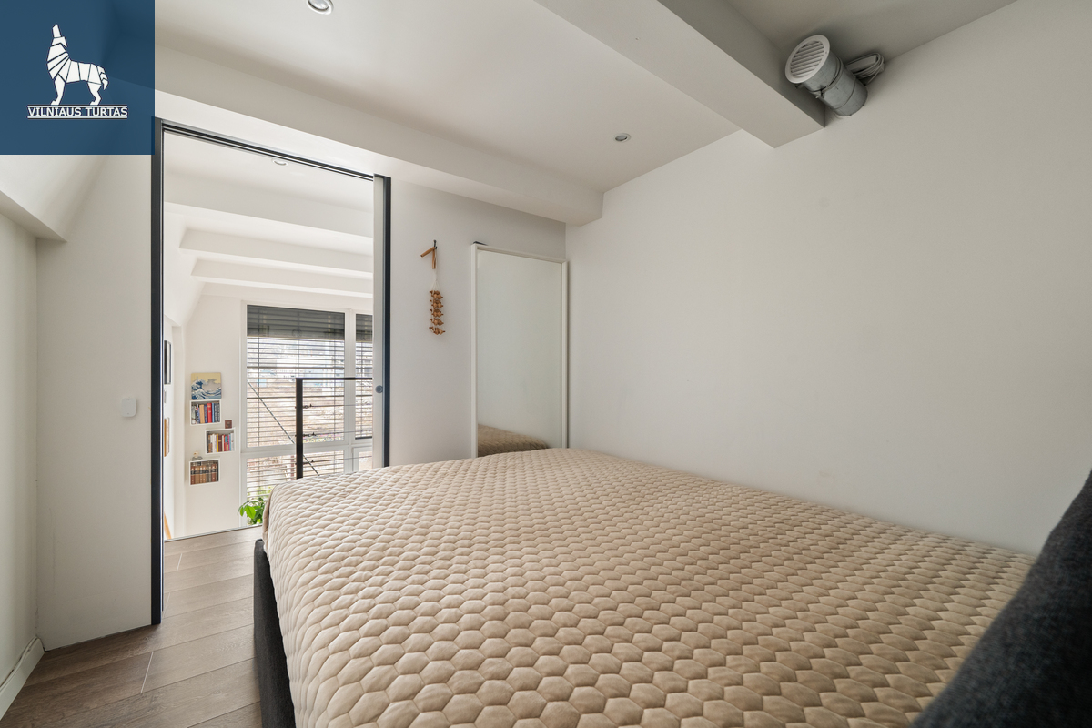 Pilnavertė antresolė – apie 2,04 m aukščio, todėl patogi net ir aukštesniam žmogui, puikiai tinkanti miegui ar darbo erdvei. Komfortą užtikrina du kondicionieriai, rekuperacinė sistema su oro paskirstymu į miegamuosius, šildomos grindys vonioje, o išorinės automatinės žaliuzės apsaugo nuo perkaitimo net karščiausiomis dienomis. Butas orientuotas į rytus, pietus ir vakarus, tad šviesa lydi visą dieną.