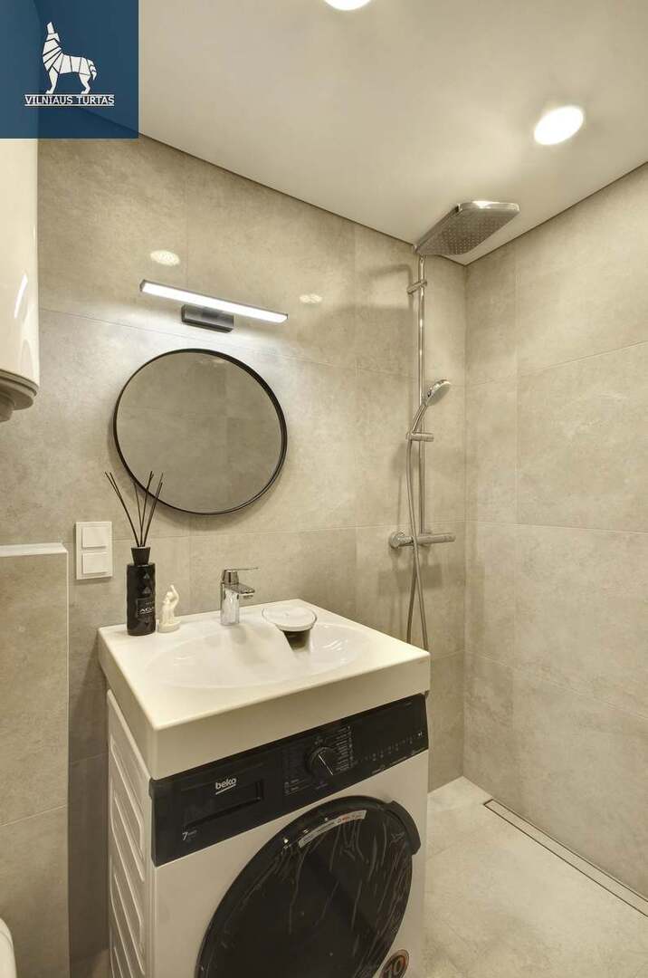◾ Vonios kambarys, (dušo kabina, kriauklė, pakabinamas tualetas, vandens šildytuvas – „boileris”, skalbimo mašina/džiovyklė);