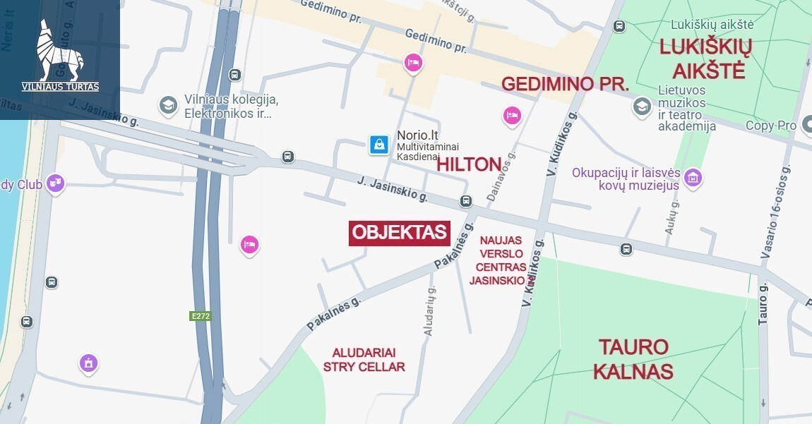 Pirmame aukšte esančios patalpos sparčiai besivystančiame Vilniaus Naujamiestyje, Jasinskio / Pakalnės gatvėje. Priešais pastatytas modernus verslo centras dar labiau kelia šios lokacijos vertę. Netoliese Hilton Garden Inn Vilnius viešbutis, Gedimino pr.