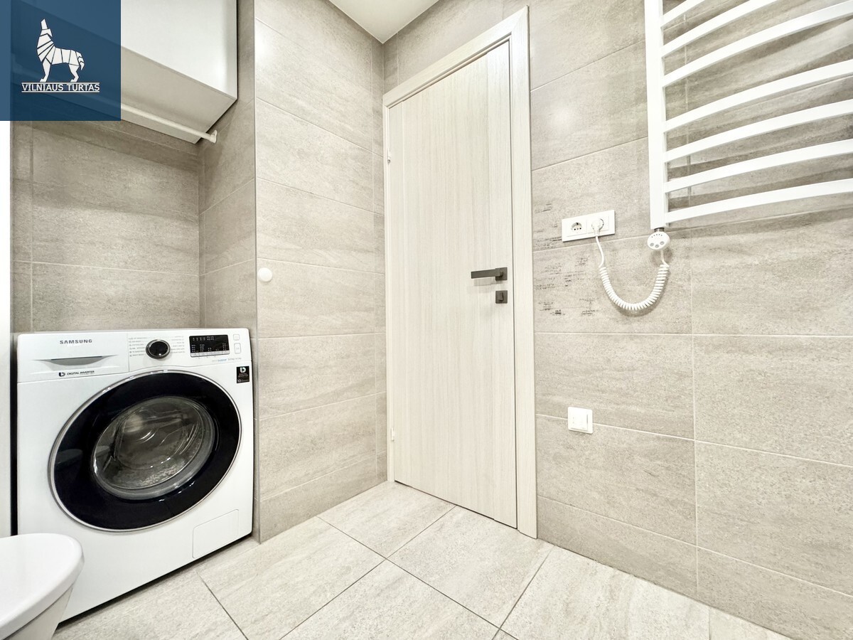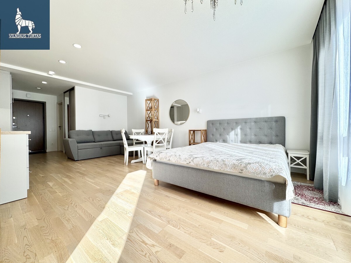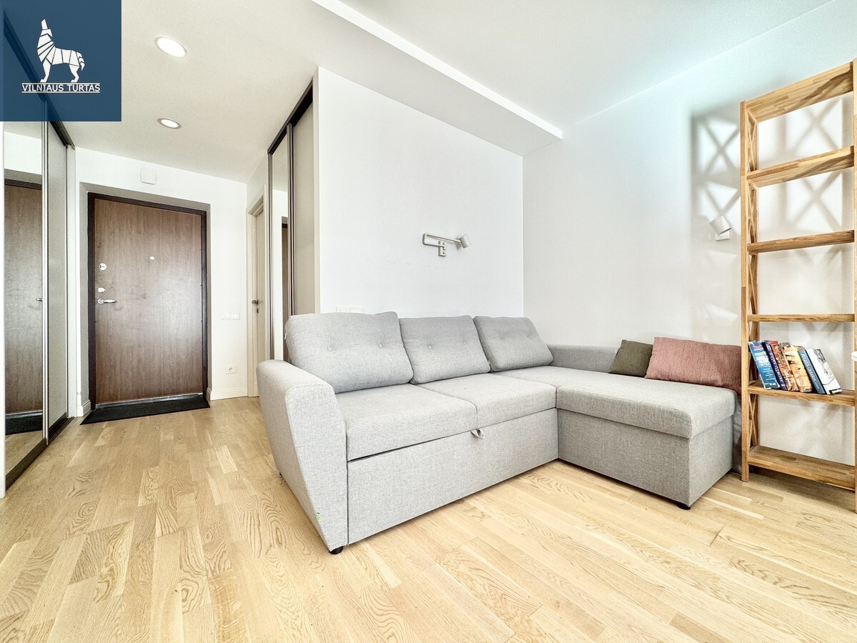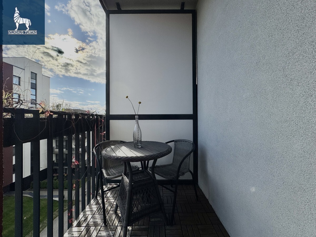 Nuomojamas modernus, šviesus ir pilnai įrengtas 1 kambario butas su balkonu Naujamiestyje – prestižinėje Kauno gatvėje, 2017 m. statybos name.