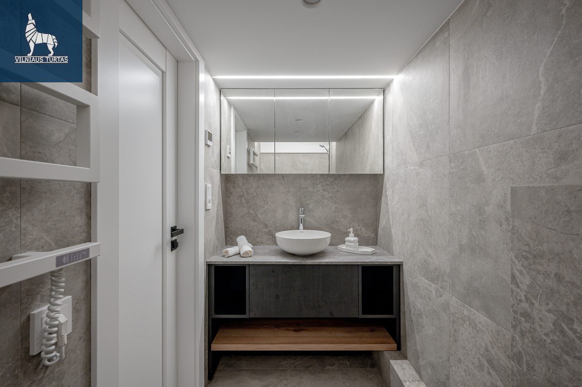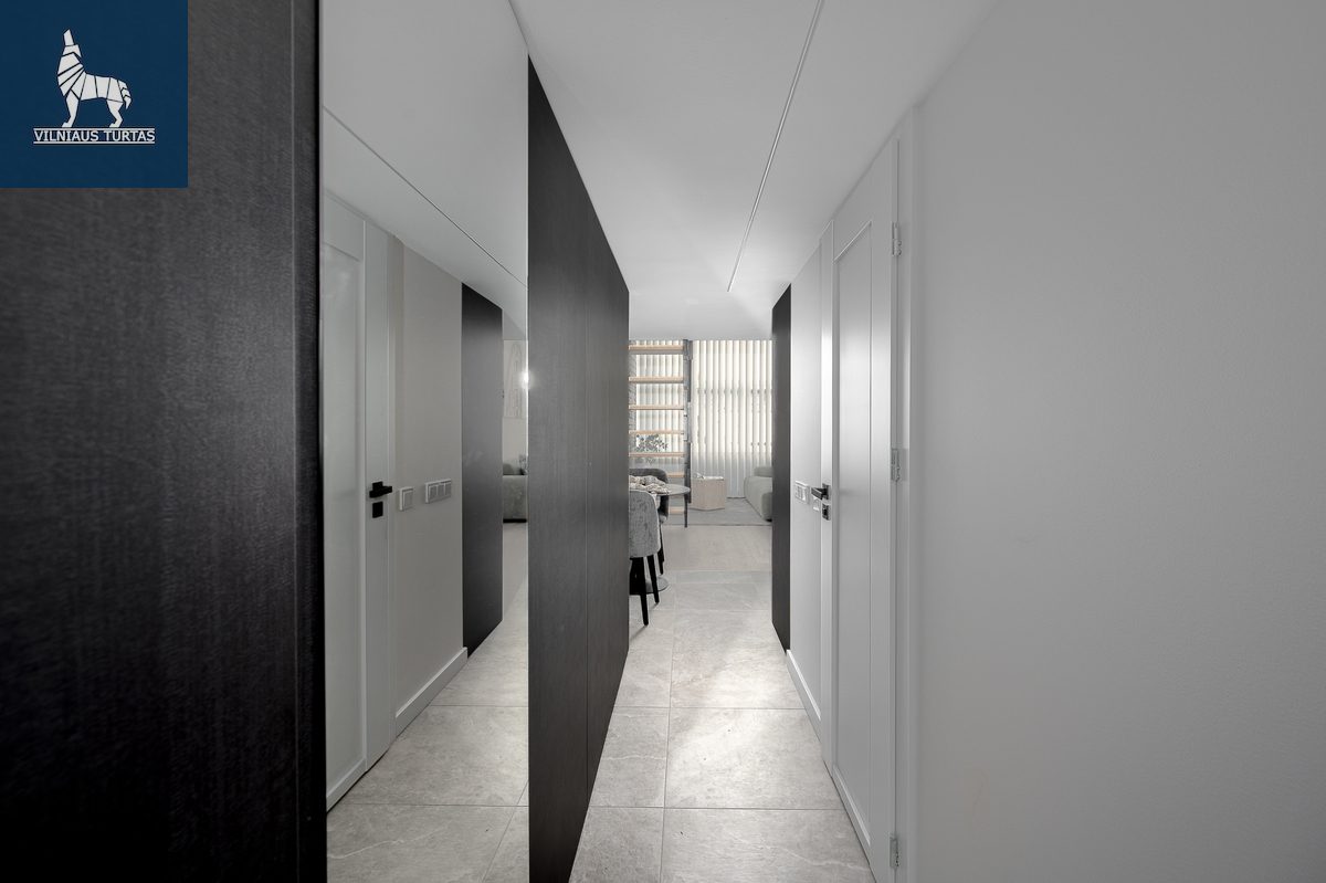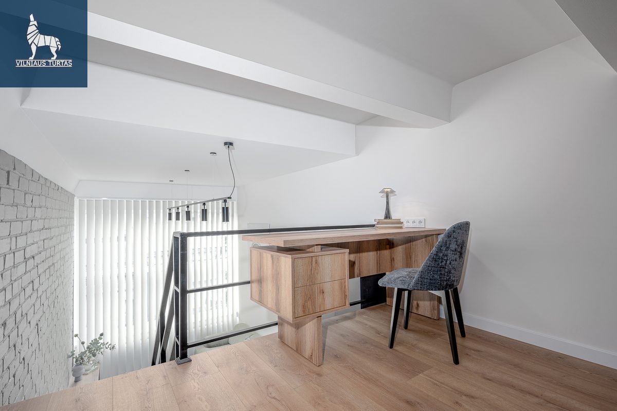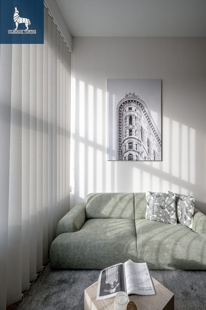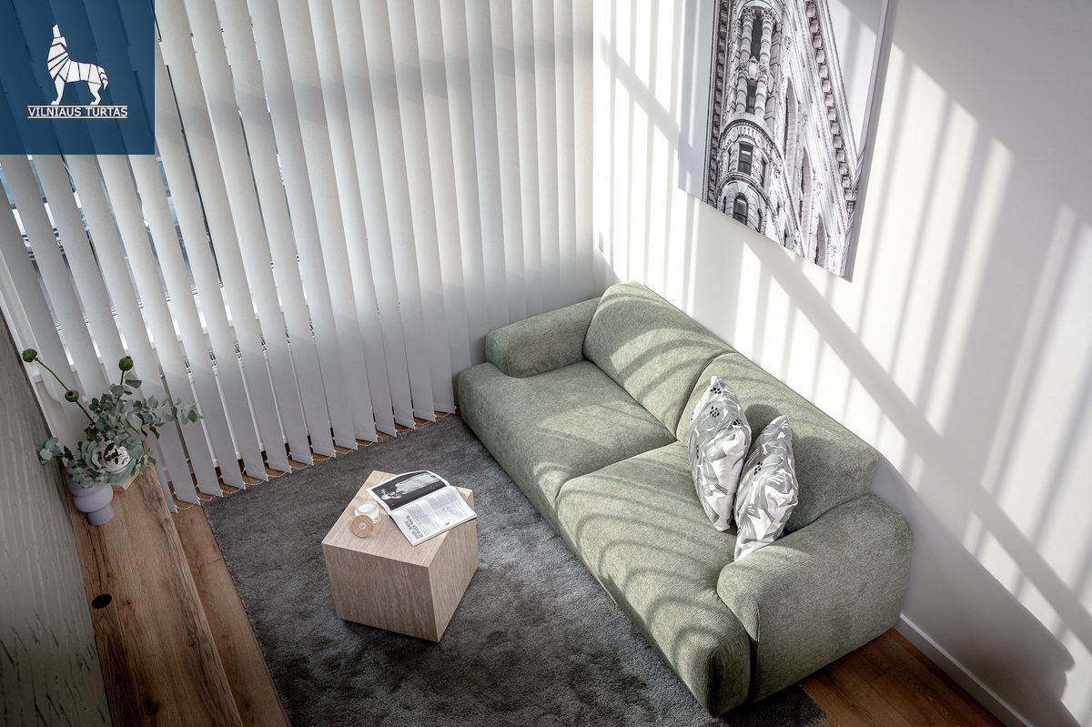 Pietų krypties langai kasdien pripildo erdvę šviesos, o šiuolaikiškai sutvarkytas interjeras leidžia iškart įsikelti ir gyventi be papildomų rūpesčių.