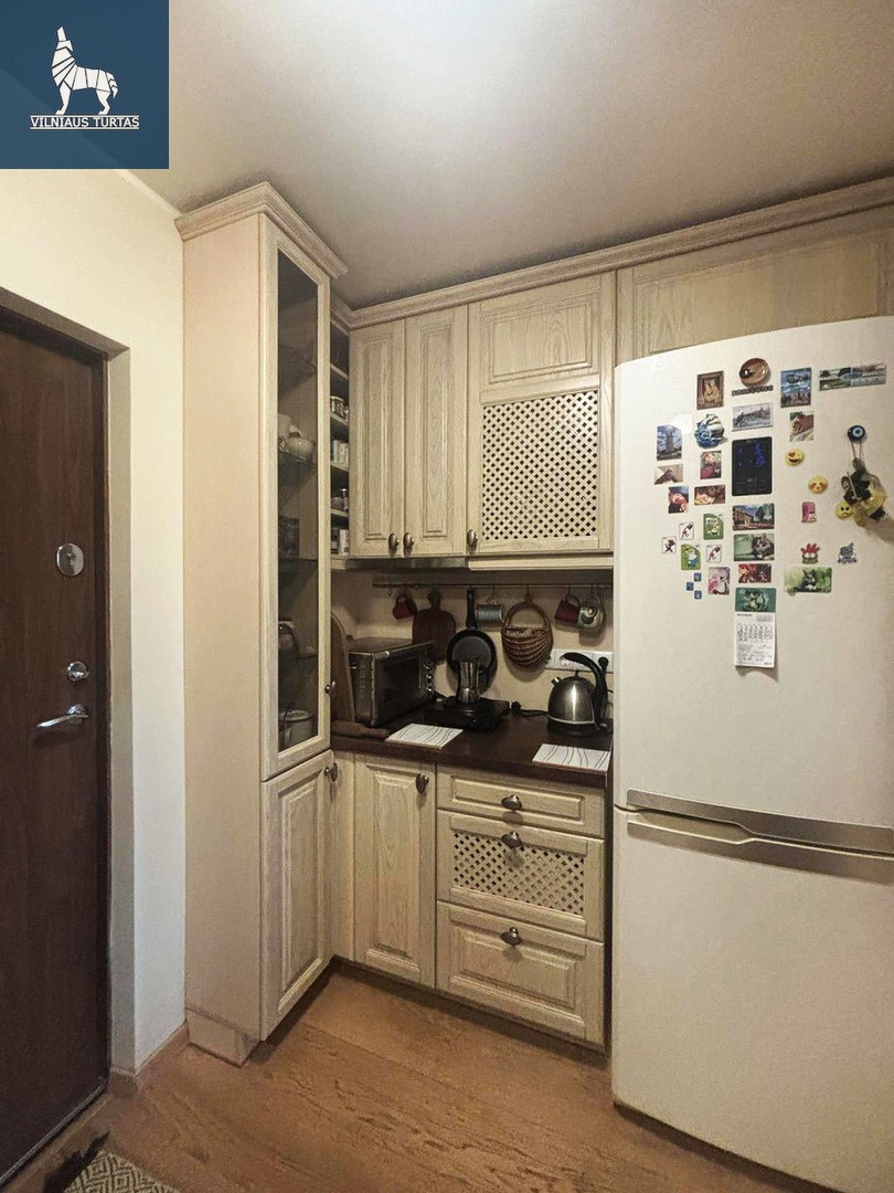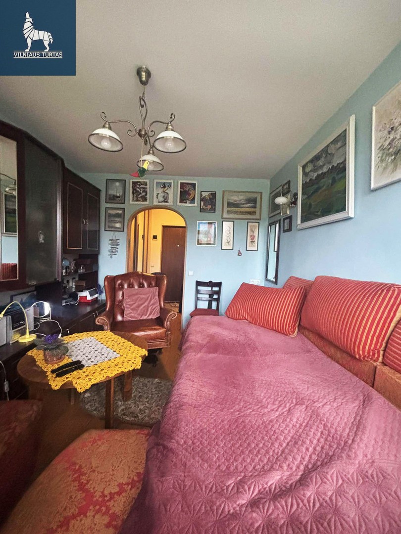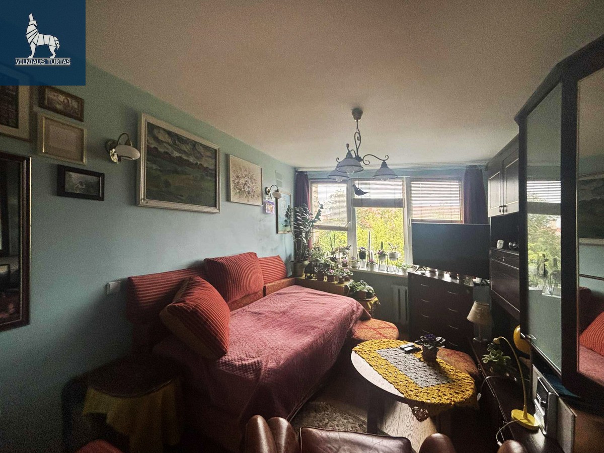 Parduodamas bendrabučio tipo vieno kambario butas. Lokacija labai tinkama nuomai kadangi centras ir senamiestis pasiekamas vos kelios minutės pėščiomis o Vingio parkas atrodo ranka pasiekiamas. Tualetu ir vonia dalinasi tik trys kaimynai. Yra galimybė pasidaryti tualeta ir duša bute. 2017 metais atliktas remontas. Pakeistos lubos, grindys, įrengta papildoma garso izoliaciją tarp butų.