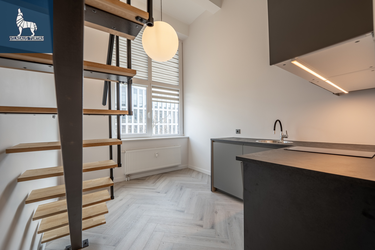 Naujamiestyje, Naugarduko gatvėje, parduodamas naujai įrengtas, dar niekieno negyventas loftas. Erdvė suplanuota itin funkcionaliai – svetainės zona sujungta su virtuve, o miegamasis įrengtas antresolėje, išnaudojant aukštų lubų privalumą. Tai praktiškas pasirinkimas ieškantiems kompaktiško būsto mieste arba investicijos nuomai, Naujamiestis ir loftai paklausūs tiek ilgalaikei, tiek trumpalaikei nuomai.