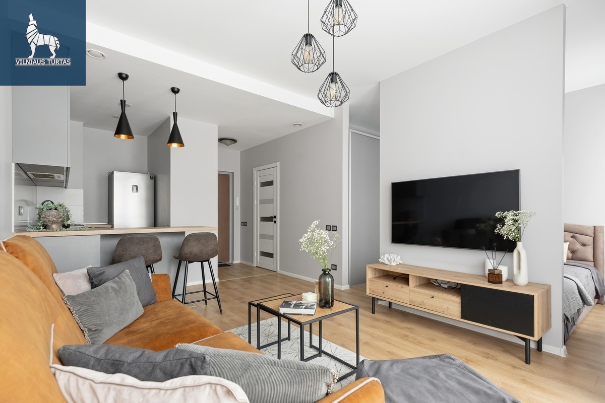 Parduodamas jaukus ir funkcionaliai suplanuotas 2 kambarių, 33,33 m² butas Naujamiestyje, moderniame „Live Up“ projekte (Naugarduko g. 62).