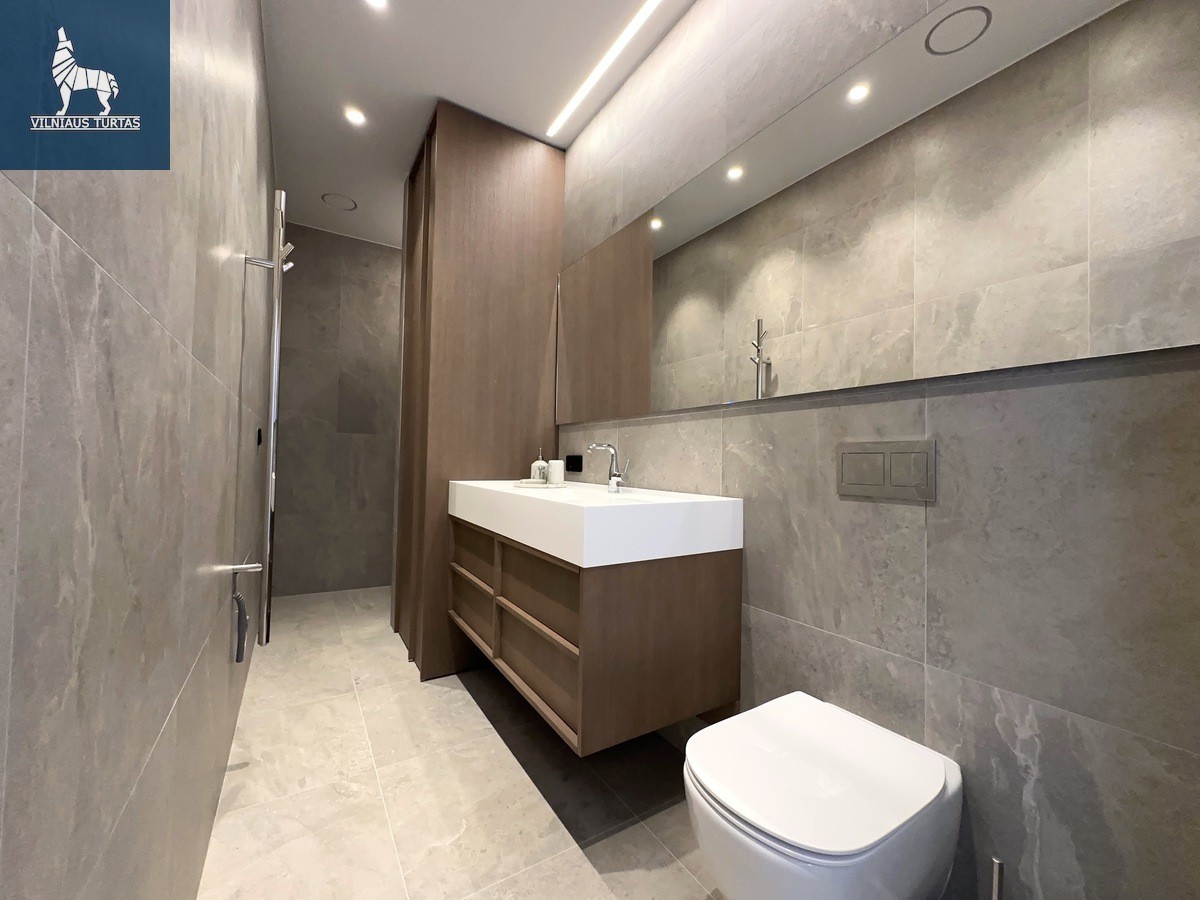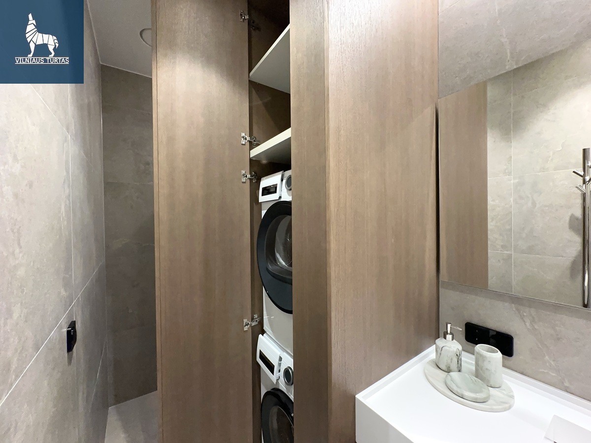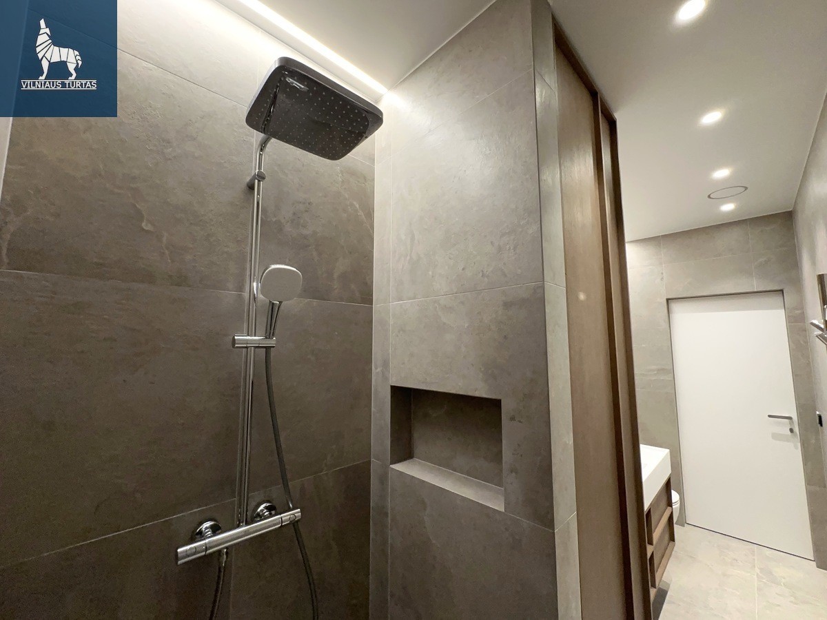 Panerių g. 12A – pilnai įrengtas, naujai pastatytas 2 kambarių butas su terasa ir vieta automobiliui. Nuoma 1 350 €/mėn., papildomas depozitas – vieno mėnesio nuomos dydžio. Objektas paruoštas ilgalaikei nuomai, modernus įrengimas ir geoterminis šildymas užtikrina komfortą bei žemas eksploatavimo sąnaudas. Lokacija – Naujamiestyje, miesto centro zonos privalumai, patogus susisiekimas.