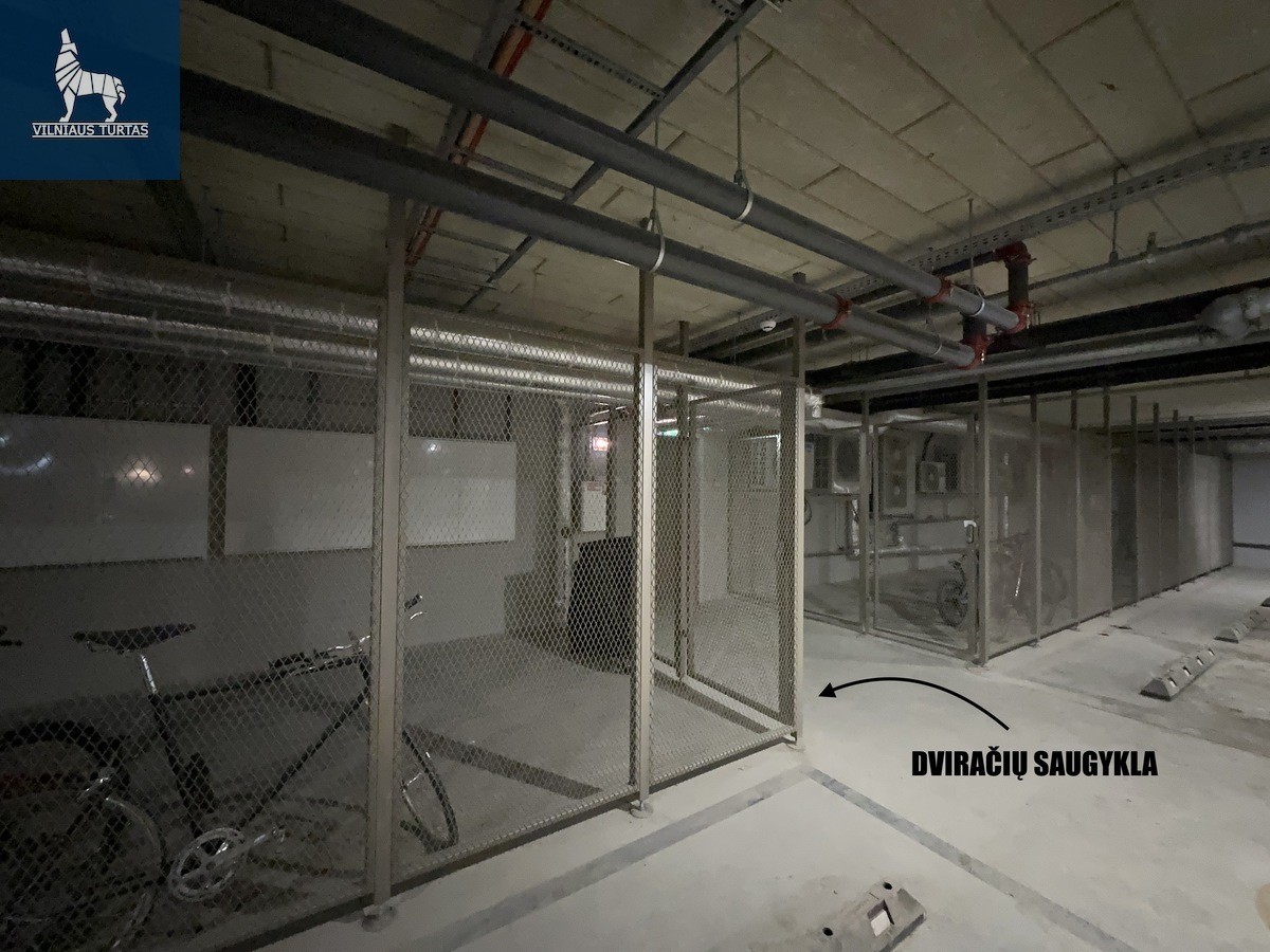 – Dviračių saugykla ir vieta automobiliui (požeminis parkingas).