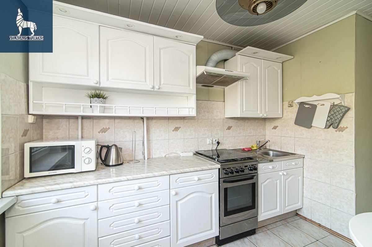 Bute yra visi būtinieji baldai bei puikiai veikianti buitinė technika naujųjų gyventojų patogumui. Šiuolaikiškai įrengta, patogi, funkcionali, šviesi virtuvė.