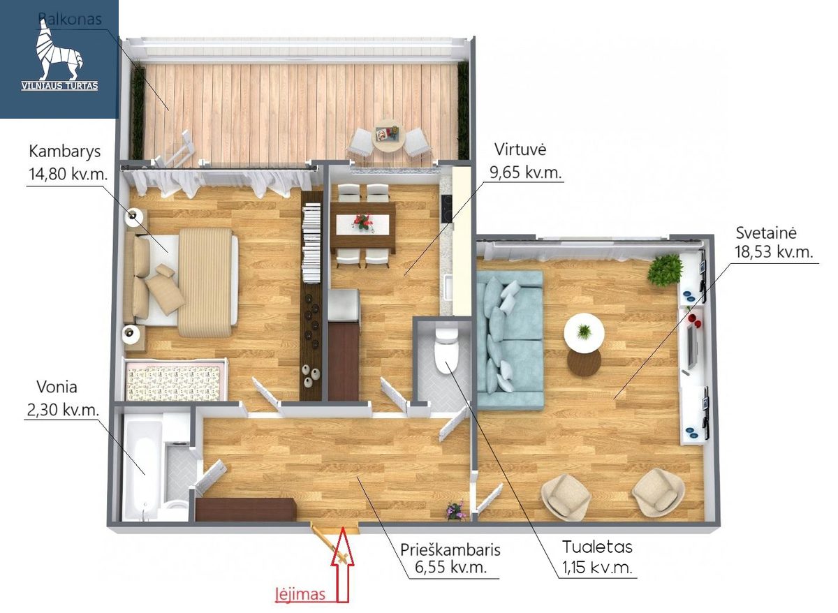 ◾ Bendras plotas: 52,98 kv. m.;