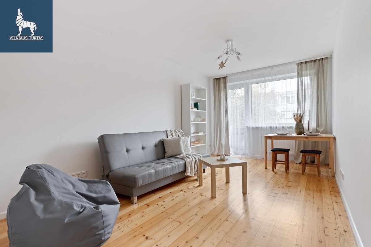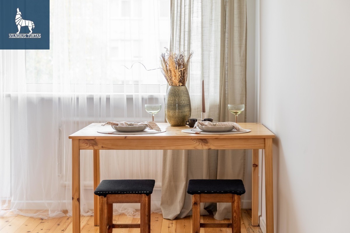 Nuomojamas jaukus ir šviesus dviejų kambarių butas Naujamiestyje, vos keli žingsniai nuo Vingio parko.