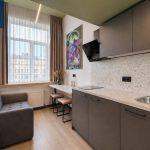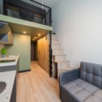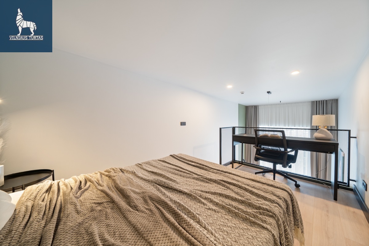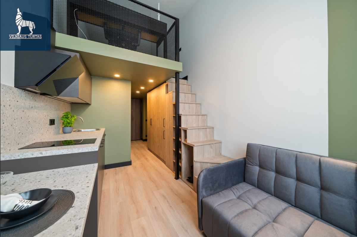 – Butas su aukštesne antresole, kur įrengta miegamoji zona