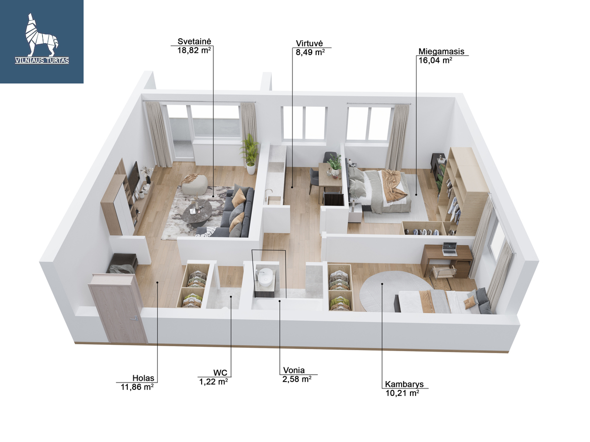 ✓ Funkcionalus 3 kambarių išplanavimas