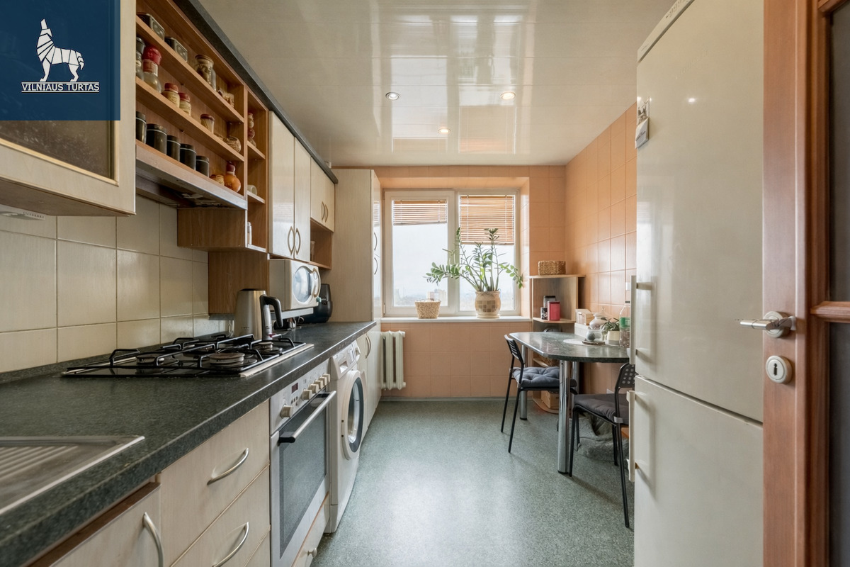 Parduodamas 3 kambarių butas Naujininkuose, Kapsų gatvėje – strategiškai patogioje vietoje, leidžiančioje greitai pasiekti svarbiausius miesto taškus. Vos kelios minutės automobiliu iki Aušros Vartų ir Senamiesčio, patogus išvažiavimas į Dariaus ir Girėno gatvę užtikrina lengvą susisiekimą tiek su miesto centru, tiek su oro uostu ar pietiniu aplinkkeliu. Aplink gausu viešojo transporto stotelių, prekybos centrų („Maxima“, „Lidl“), gydymo įstaigų bei kitų kasdien reikalingų paslaugų. Šeimoms ypač patogu – visai šalia Vilniaus „Juventos“ gimnazija, progimnazijos ir darželiai, o rajone netrūksta žaliųjų erdvių, žaidimų aikštelių ir ramių kiemų.
