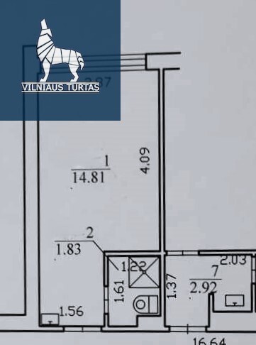 * Bendras plotas-24,8 kv/m ( buto plotas-16,64 kv/m+ 8. 16 kv/m bendro naudojimo plotas, sandėliuko dalis šalia buto)