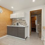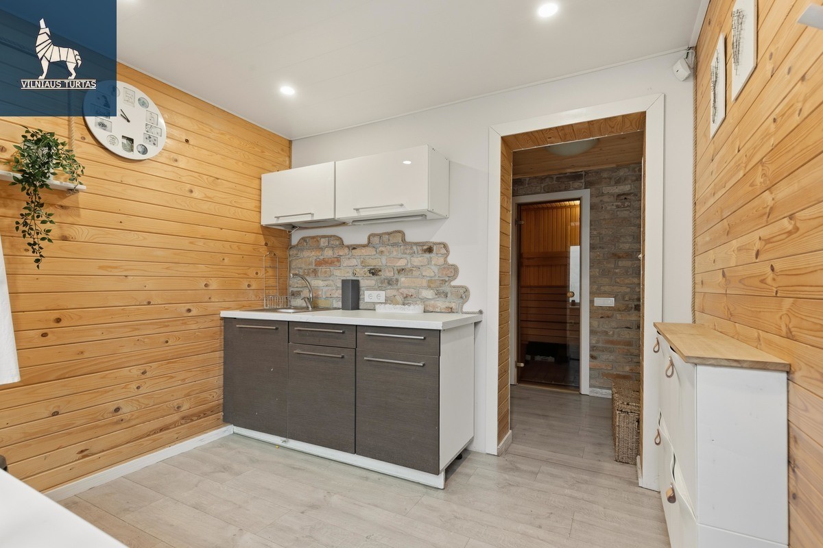 – Teritorijoje pastatytas atskiras pirties/svečių pastatas su visomis komunikacijomis. Įrengtas kambarys su židiniu, virtuvės zona, pirties ir vonios patalpos.