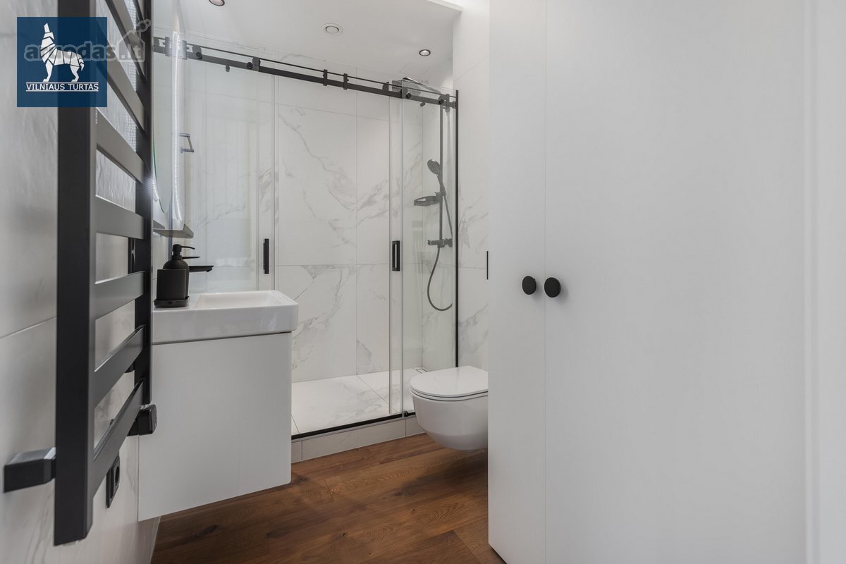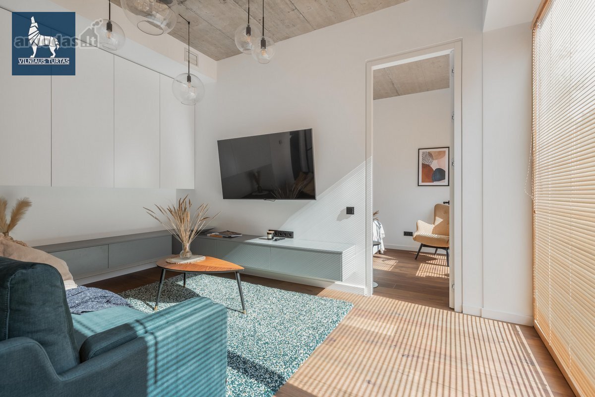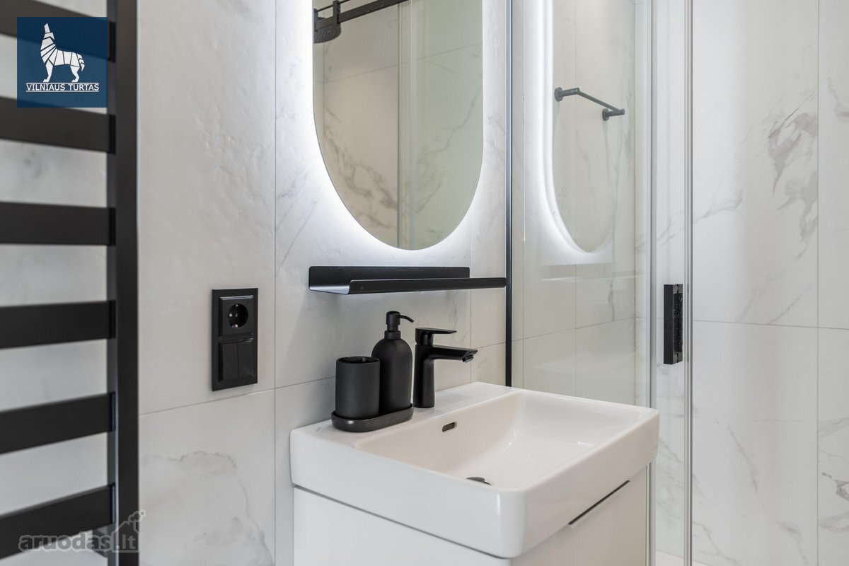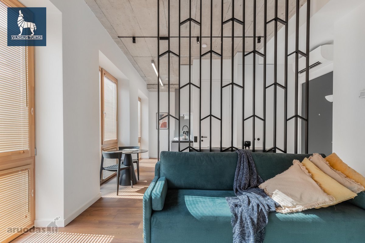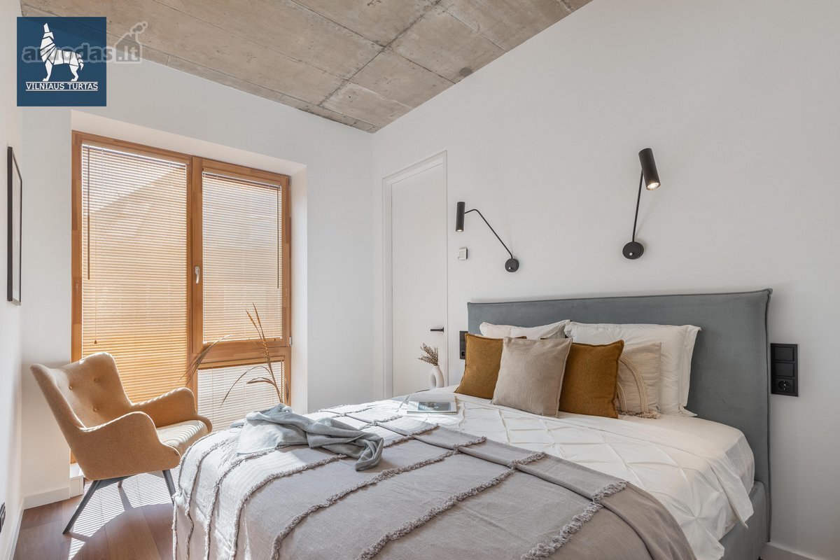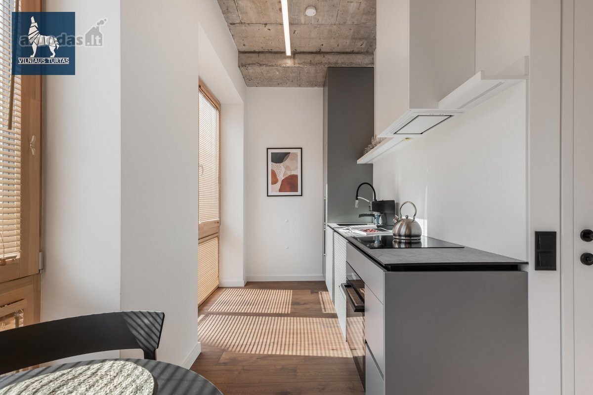 Nuomojamas moderniai ir stilingai įrengtas 2 kambarių butas naujos statybos (2020 m.) name UNESCO saugomoje Vilniaus senamiesčio zonoje, šalia Bastėjos, vos 8 minutės pėsčiomis iki Rotušės.