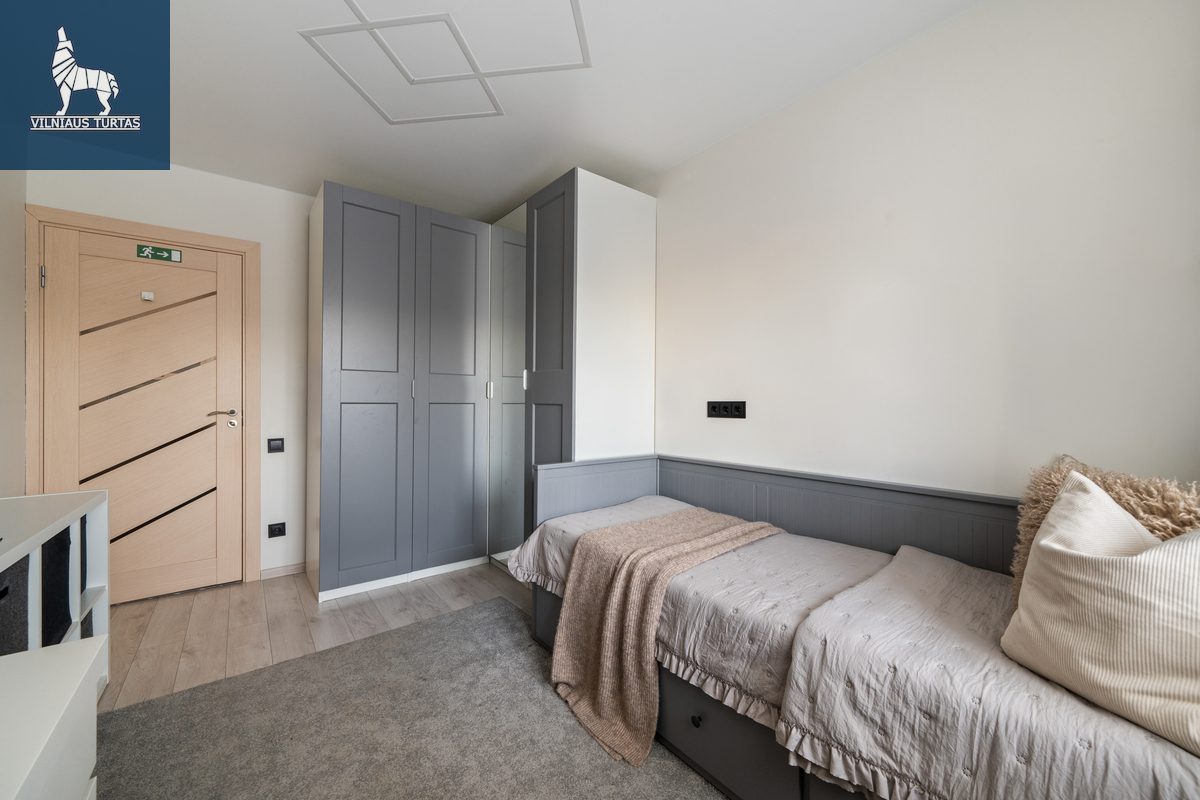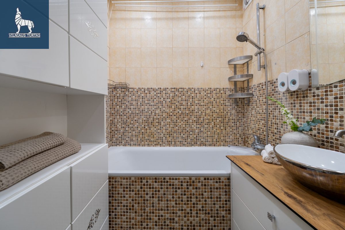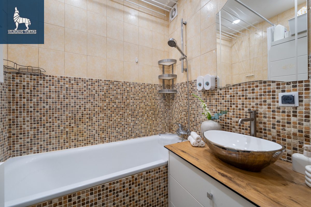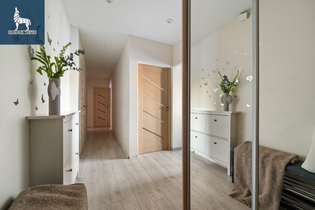 Svetainė erdvi ir šviesi, iš jos – išėjimas į suremontuotą, įstiklintą balkoną. Virtuvėje prieš trejus metus atliktas kapitalinis remontas, įrengtos šildomos grindys, o visame bute (išskyrus pagrindinį miegamąjį) – įtempiamos lubos. Atskiri vonios ir WC kambariai, atskira skalbyklos patalpa bei tamsus sandėliukas suteikia dar daugiau patogumo kasdienybėje. Papildomą komfortą užtikrina kondicionierius bei pakeisti radiatoriai.