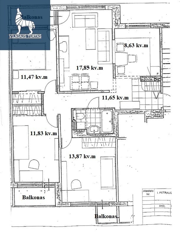 • Bute yra trys balkonai, atsiveria nuostabi miesto panorama;