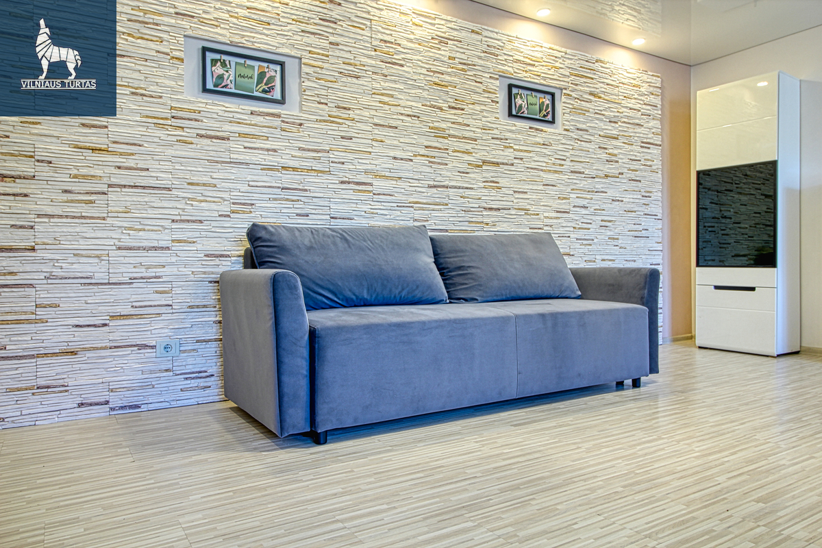 Butas pilnai įrengtas ir pritaikytas patogiam gyvenimui – su visa reikalinga buitine technika ir baldais. Erdvi svetainė , atskiras miegamasis, didelis balkonas, daug natūralios šviesos ir šilumos.