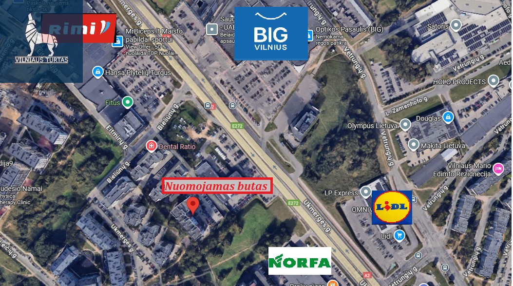 -Netoli prekybos centras BIG, Domus PRO, Rimi, LIDL; „Maxima”, Norfa, IKI ;