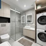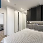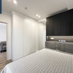 Miegamasis: spinta, dvigulė lova (160×200), spintelės virš lovos.