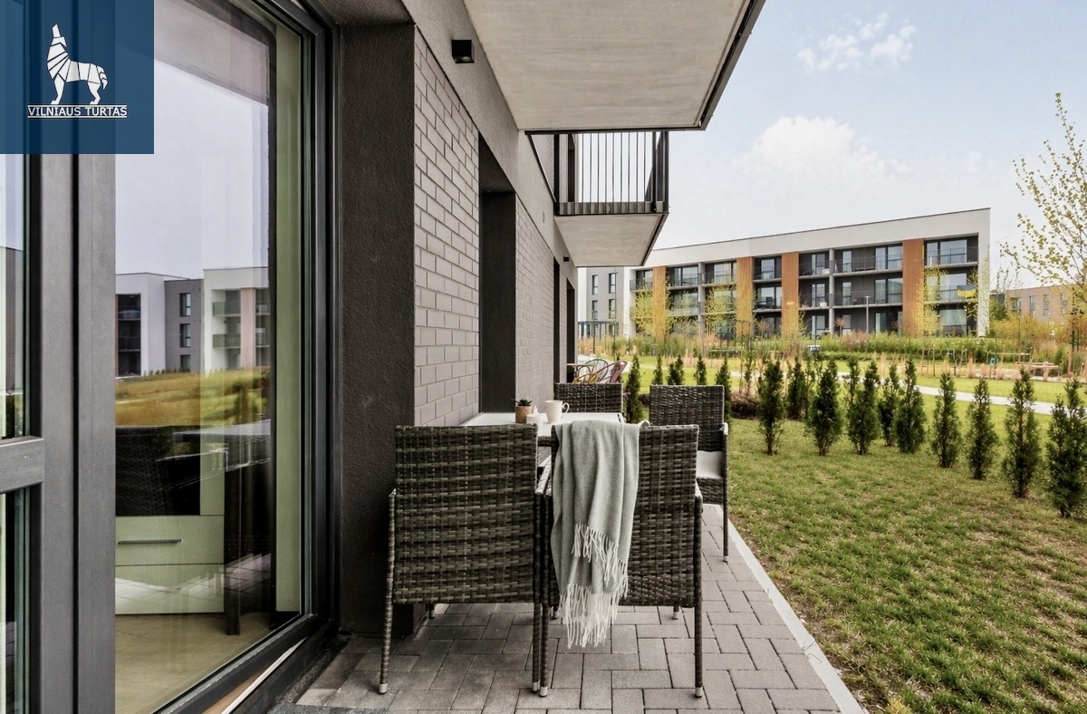 IŠNUOMOJAMAS JAUKUS 2 KAMB. BUTAS SU ERDVIA LAUKO TERASA, SANDĖLIUKU ir 2 PARKAVIMOSI VIETOMIS, PILAITĖJE, GILUŽIO G.