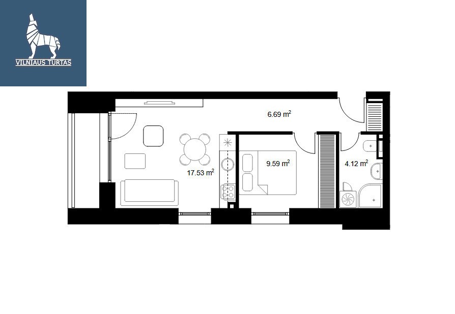 – Funkcionalus išplanavimas: 2 kambariai