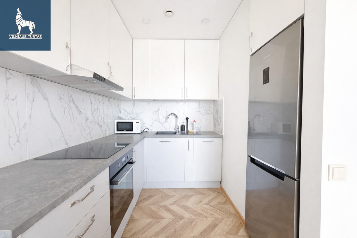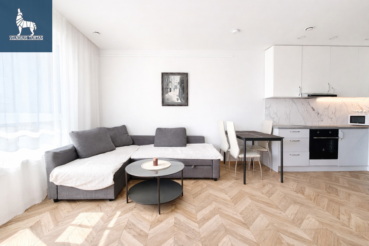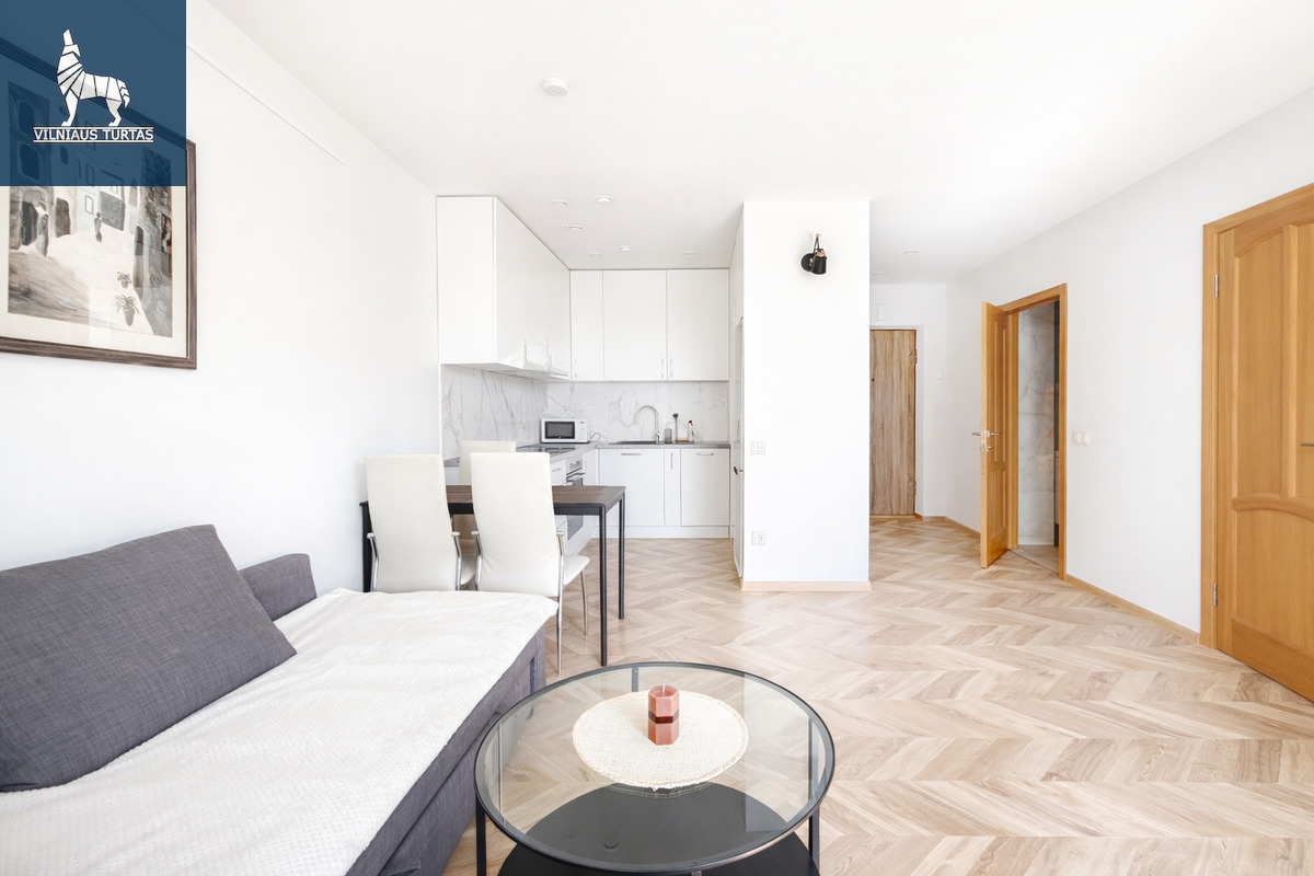 – Funkcionalus išplanavimas: izoliuotas miegamasis ir erdvi svetainė sujungta su virtuve