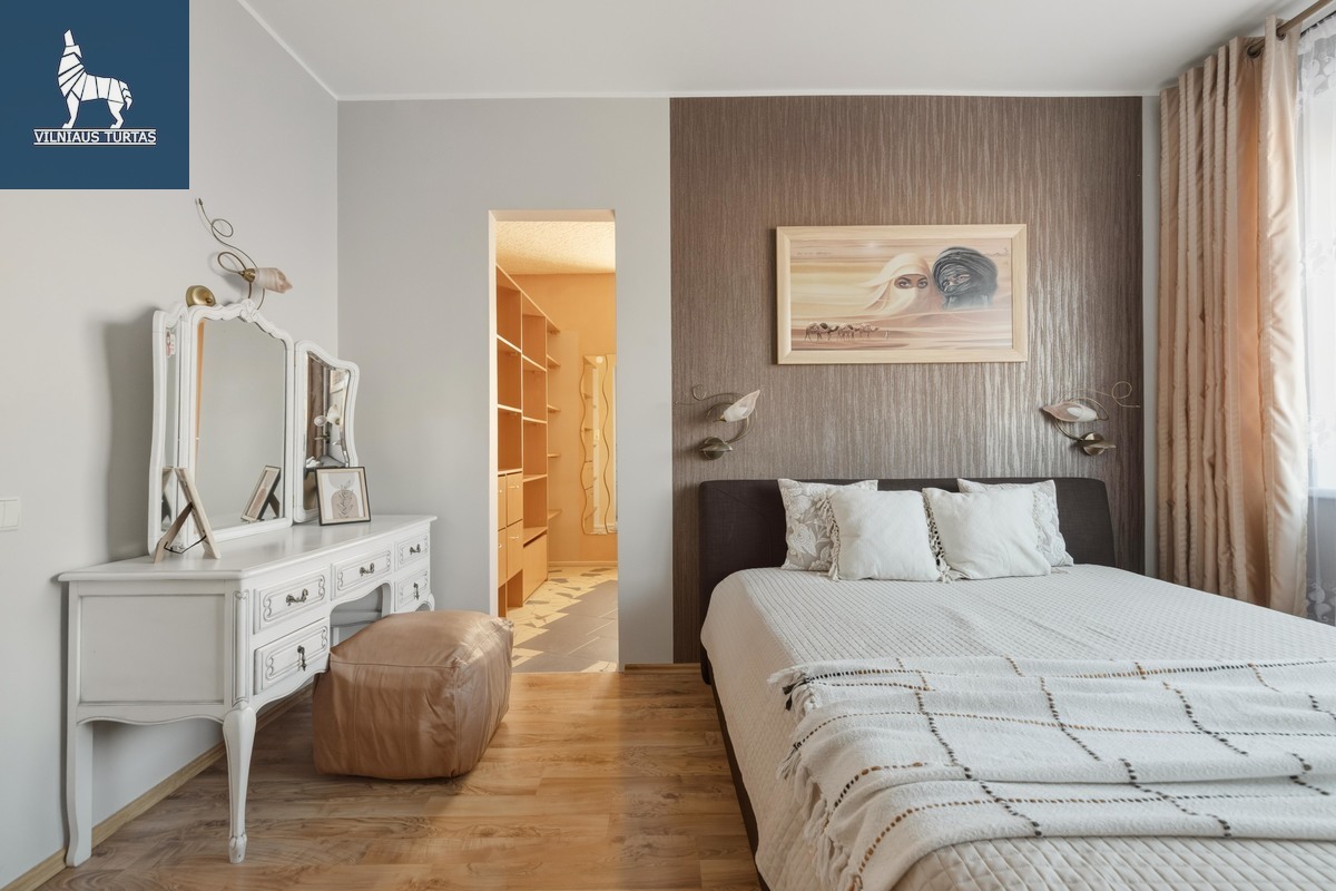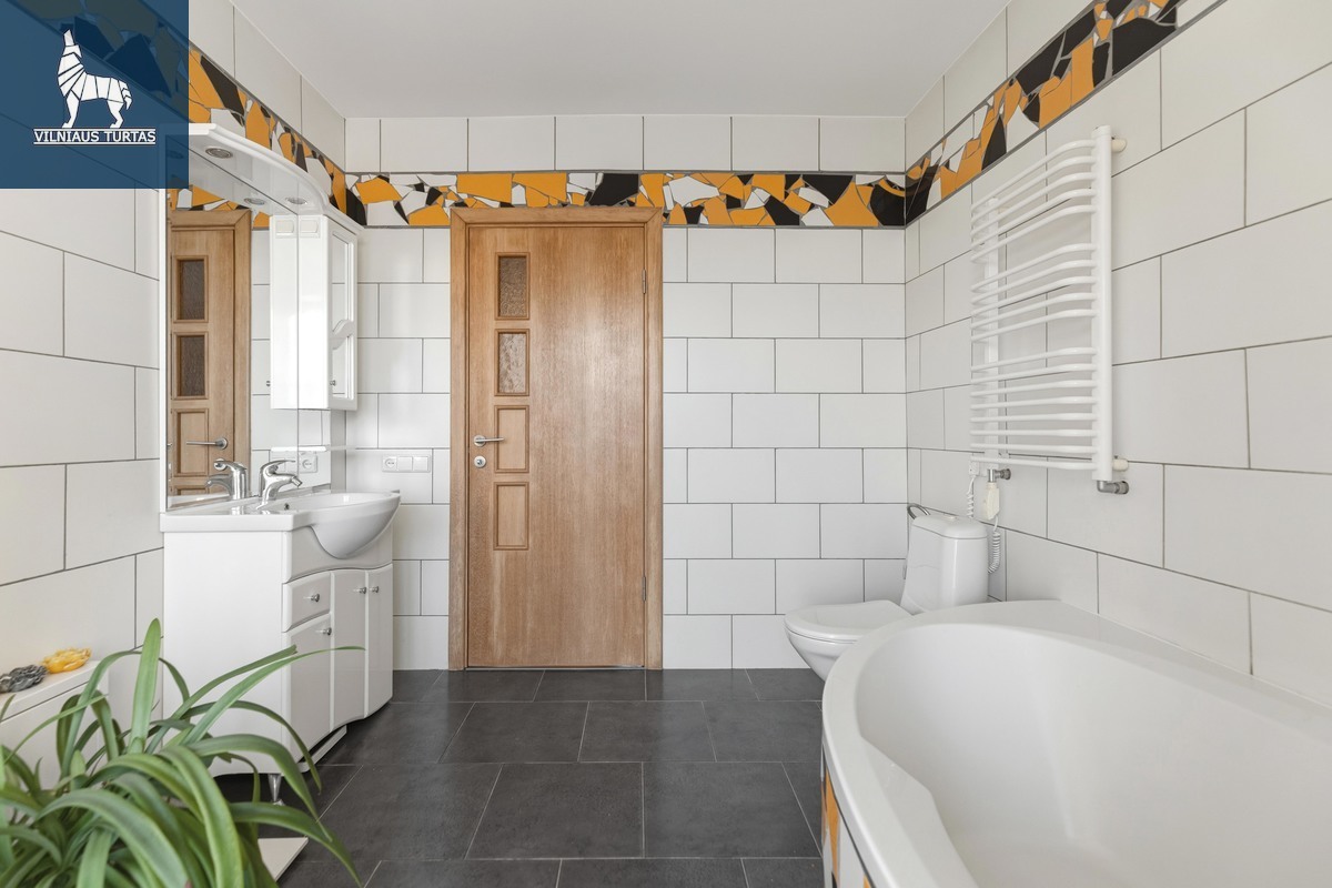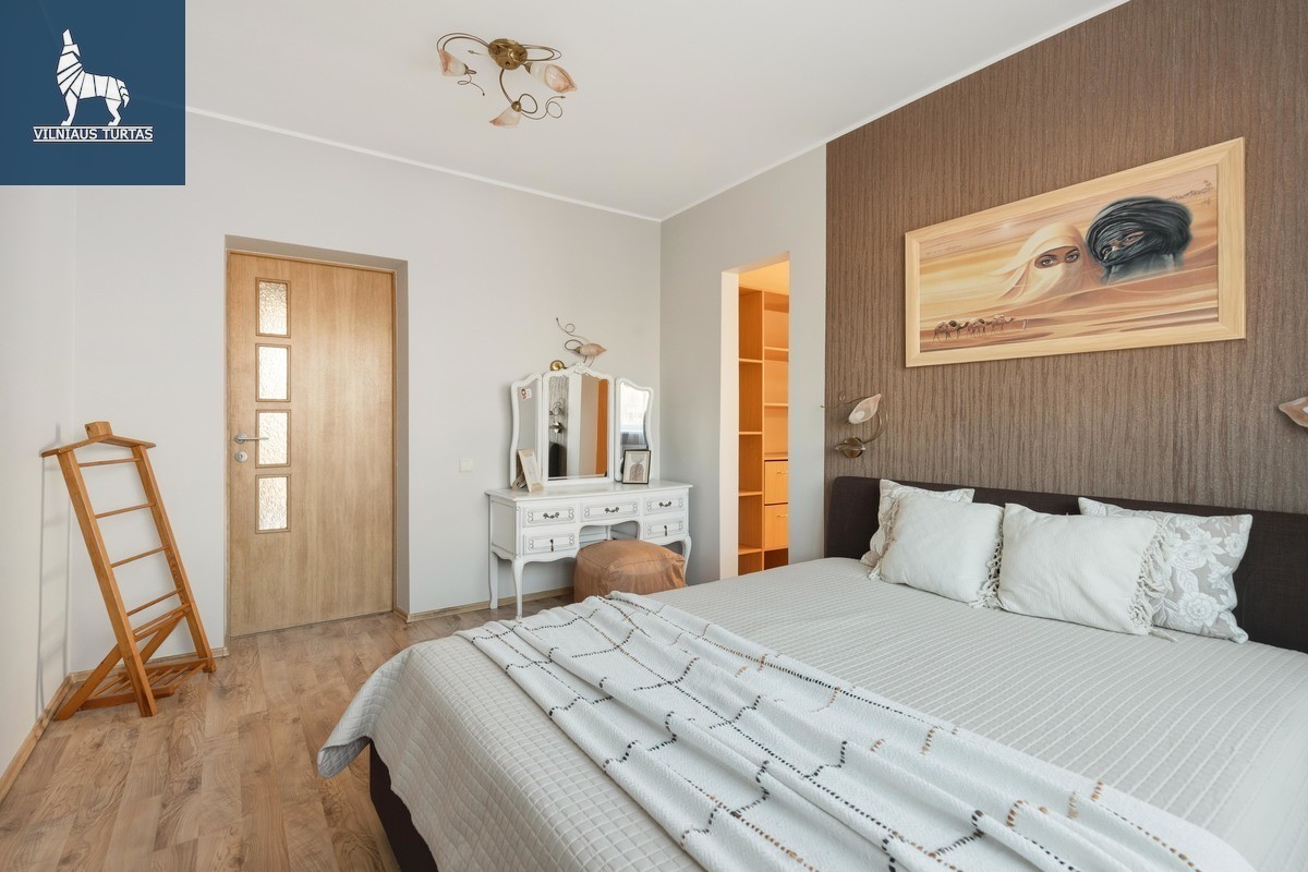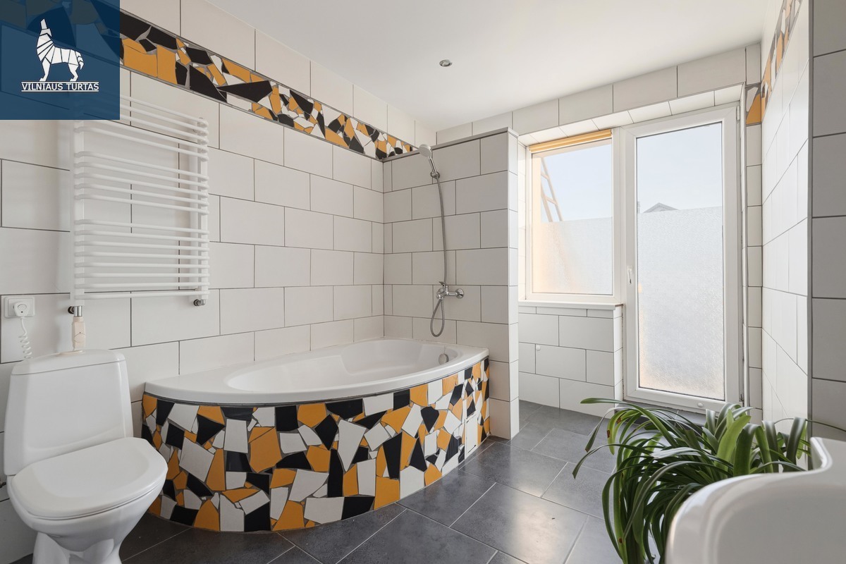 • Kambarių sk: 5 (1 aukšte – svetainė su virtuve, darbo kambarys, 2 aukšte – 3 miegamieji);