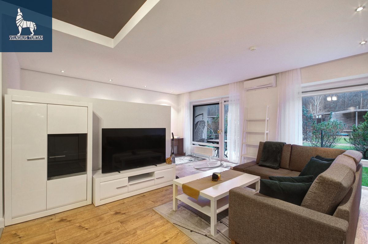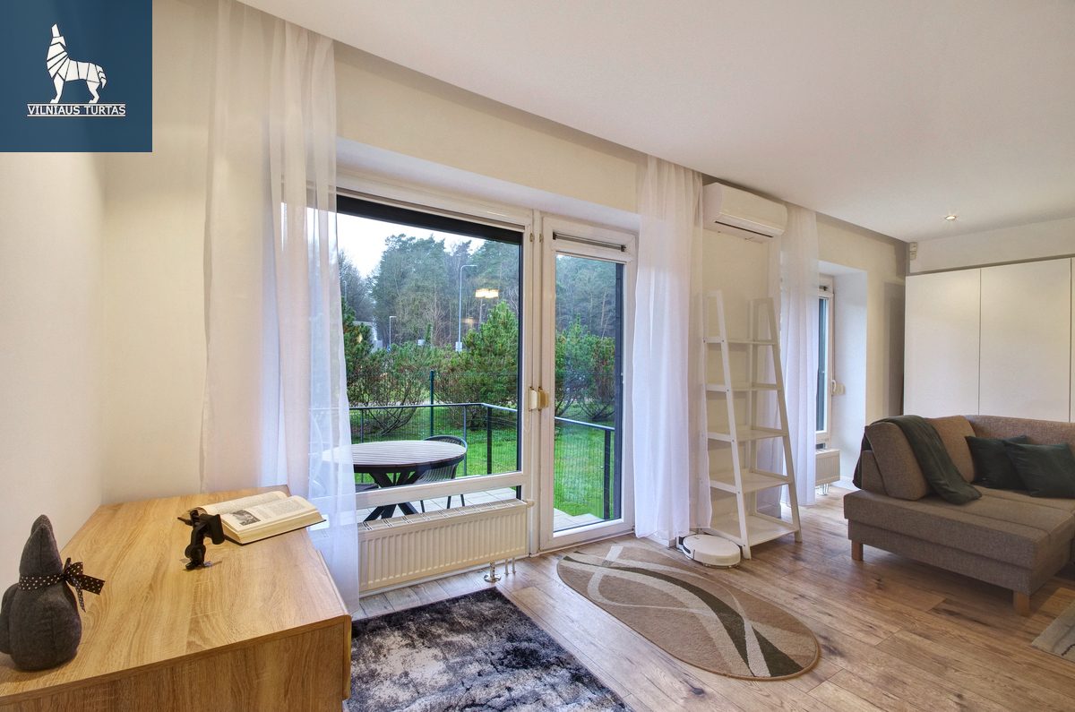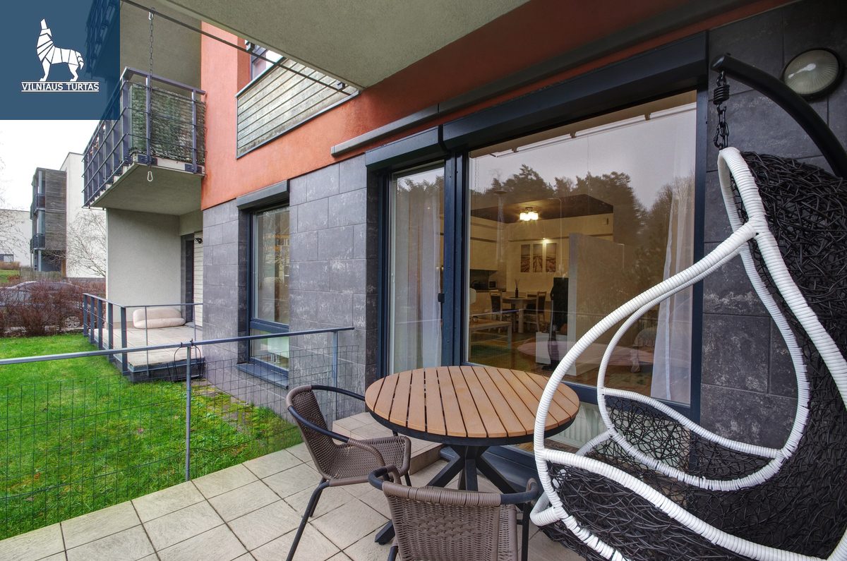 ◾Butas turi terasą su lauko baldais, į kurią galima patekti iš svetainės zonos.