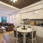 ◾Moderni virtuvė su valgomojo zona. Virtuvėje integruota reikalingiausia buitinė technika, (kaitlentė, gartraukis, šaldytuvas, indaplovė, skalbimo mašina);