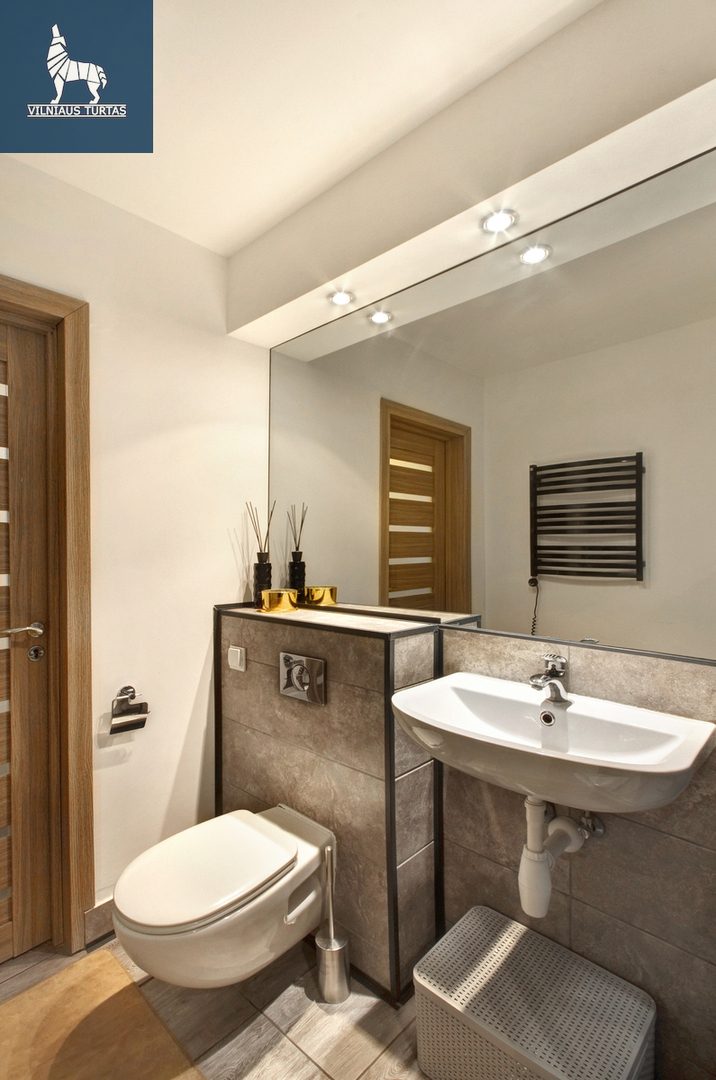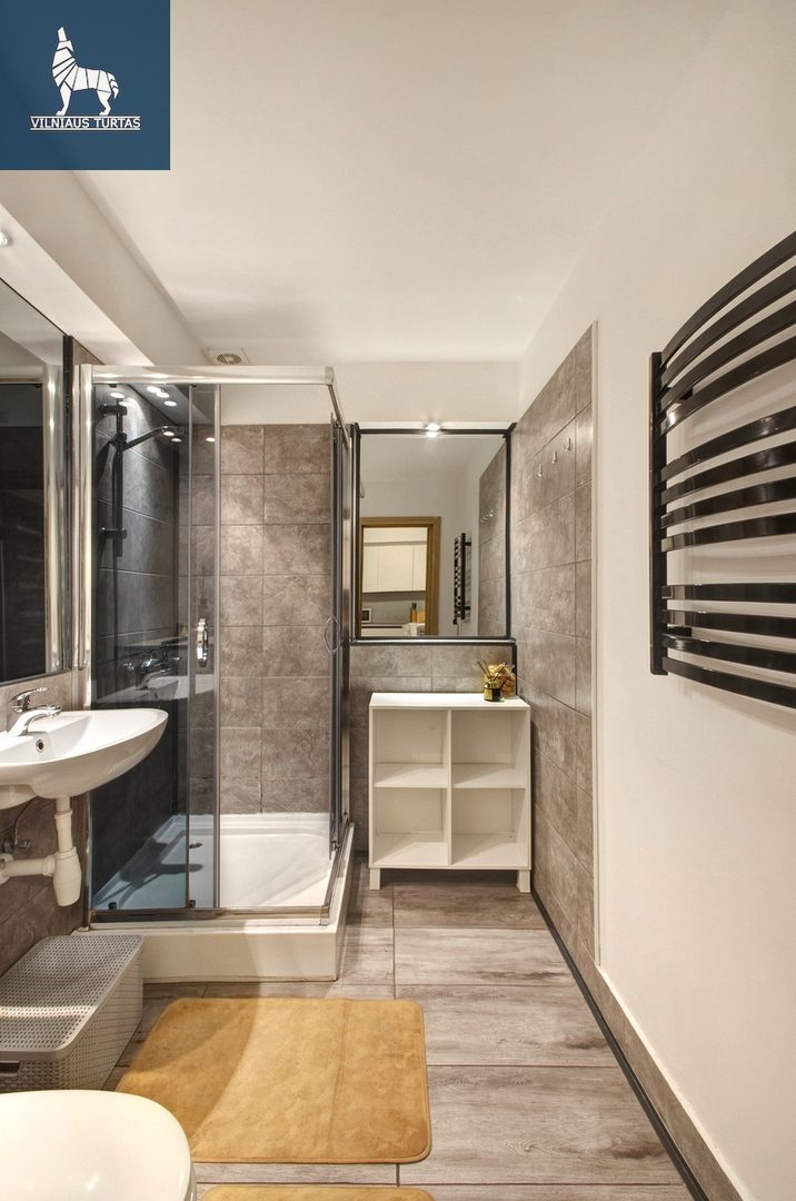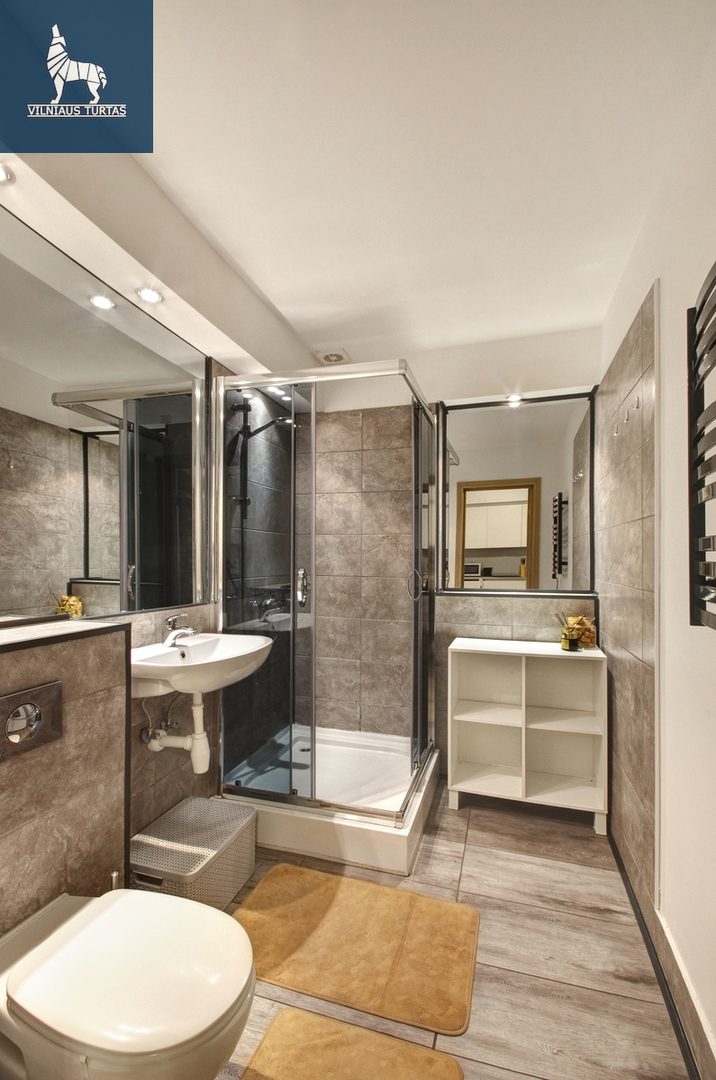◾Šviesus vonios kambarys kartu su tualetu, kriaukle, dušo kabina bei reguliuojamu/elektriniu vonios radiatoriumi;