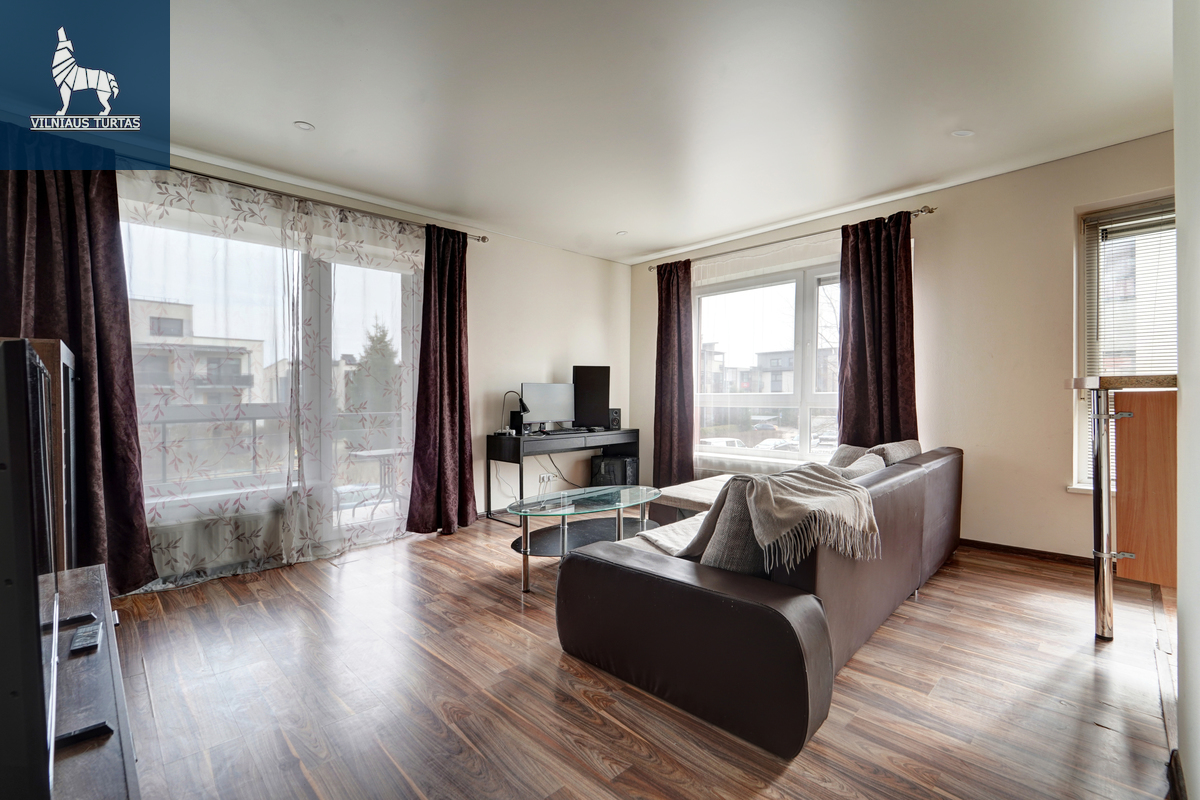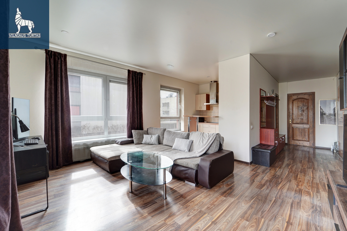 – Šviesi svetainė sujungta su virtuve, ši erdvė su išėjimu į balkoną