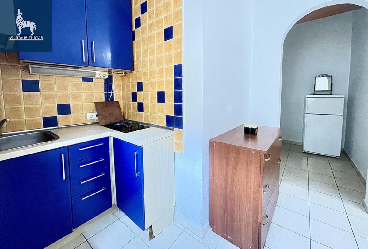• Kambarių sk. – 2 kambariai (svetainė sujungta su virtuve ir miegamasis);