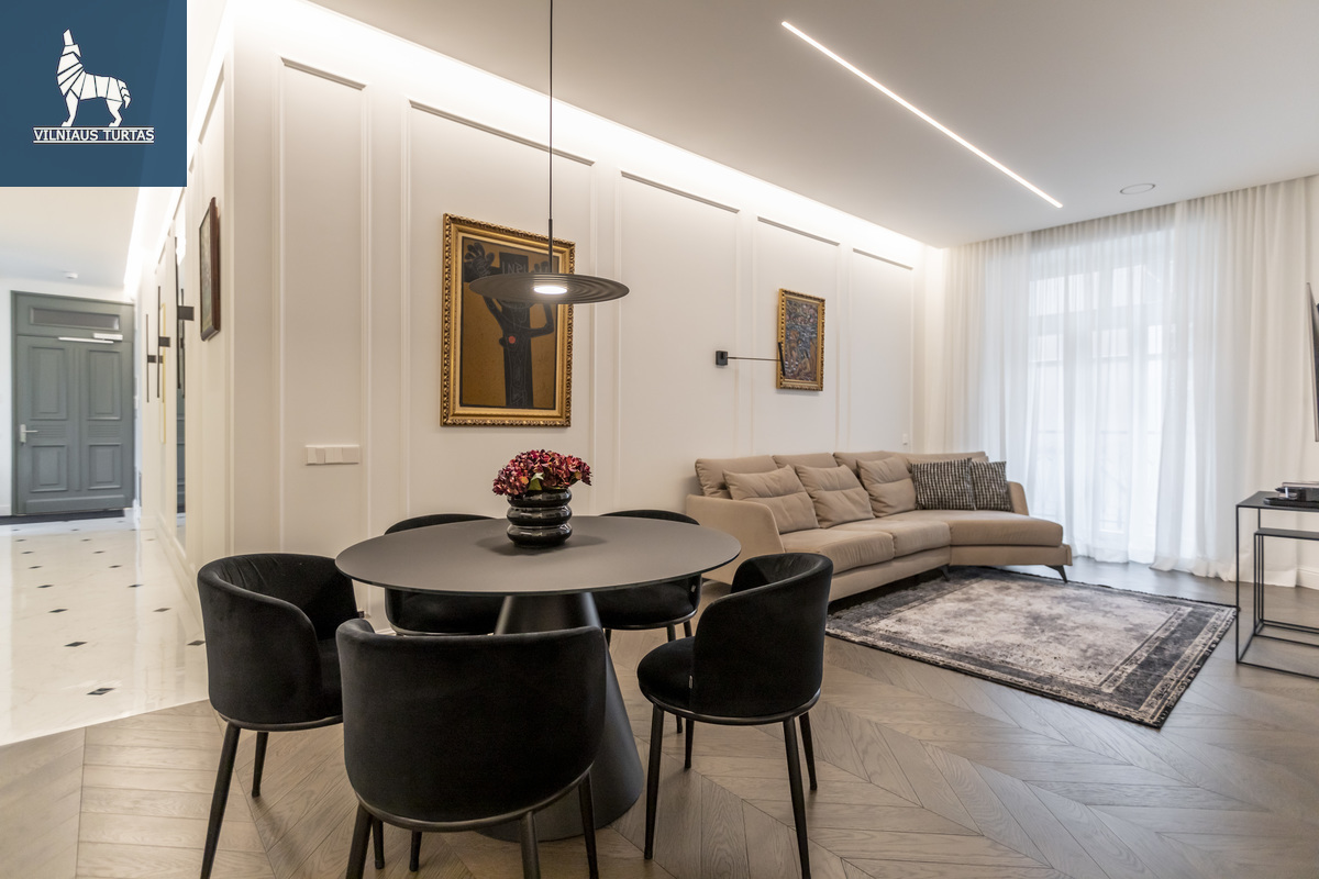 Parduodamas elegantiškas, dizainerės kurtas butas vienoje prestižiškiausių sostinės vietų – šalia Lukiškių aikštė.