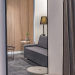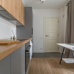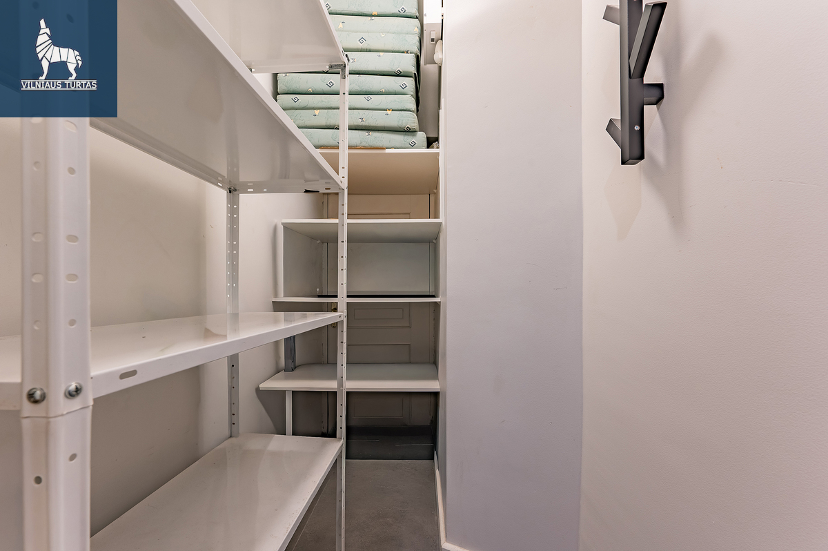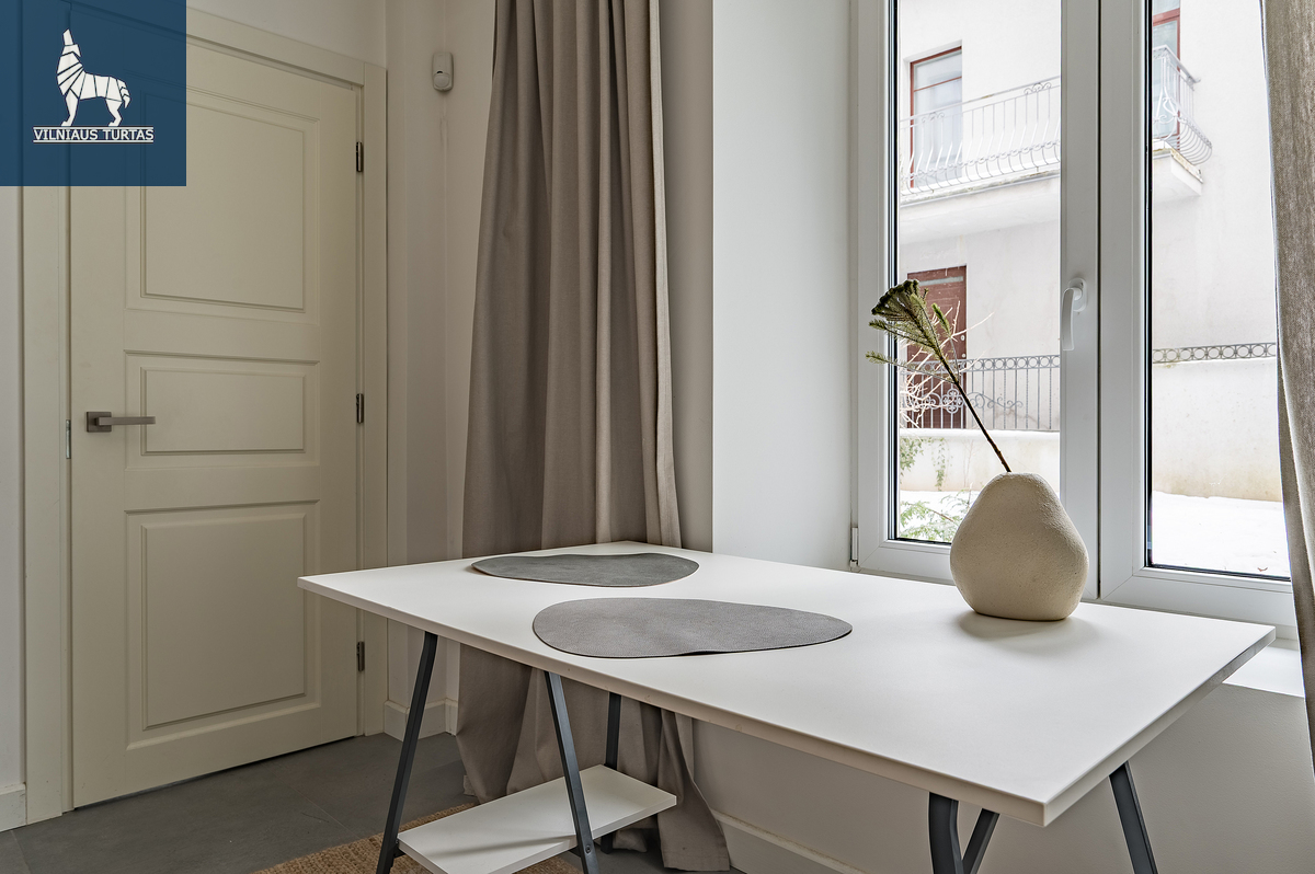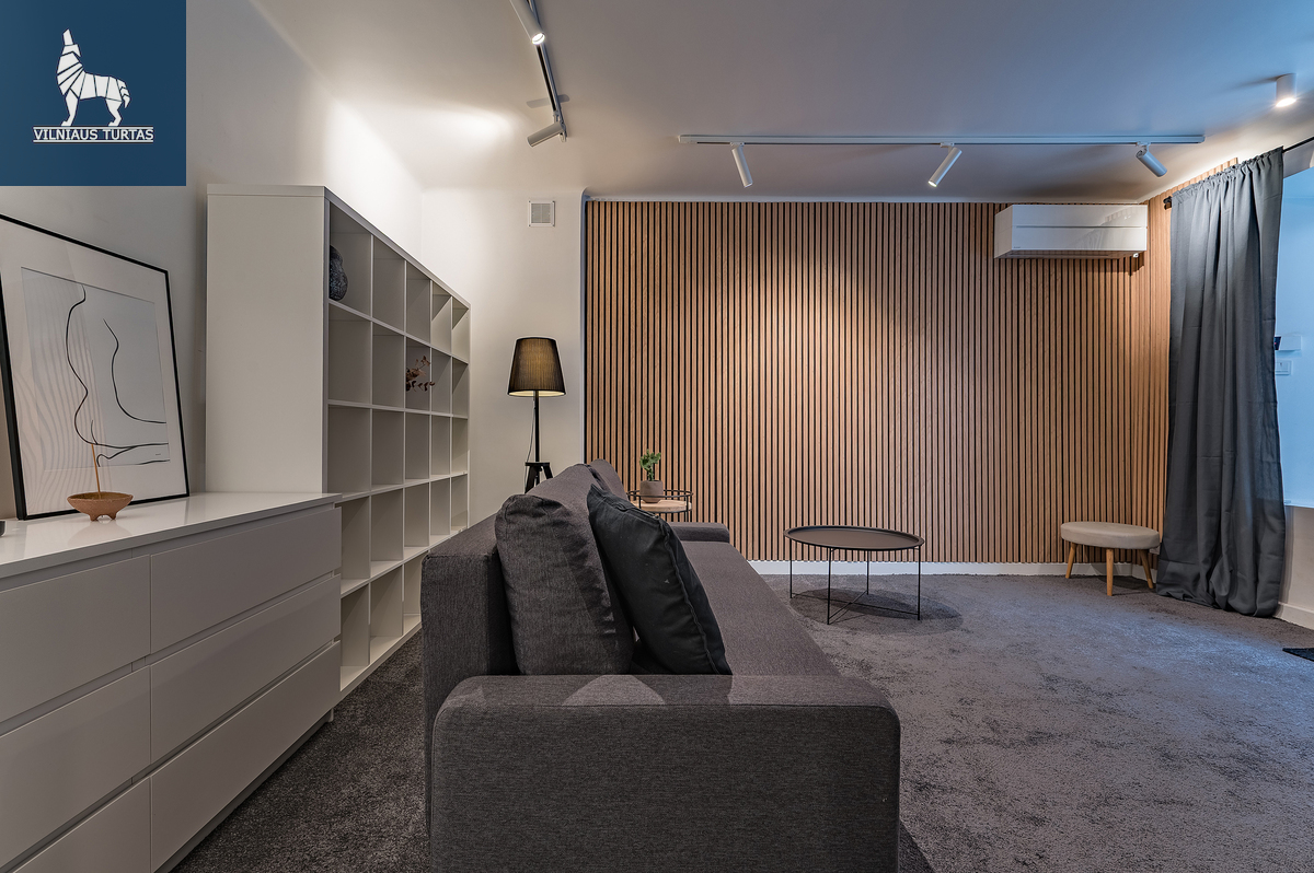 Butas yra funkcionalus. Virtuvė su visa įranga, kaitlentė, orkaitės, šaldytuvas, šaldiklis, gartraukis, indaplovė, skalbimo mašina, labai platus stalviršis patogiam maisto ruošimui, daug vietos virtuvės spintelėse ir spintose. Svetainėje – miegama sofa-lova, lentynos, komoda, didelis veidrodis, toršeras, kondicionierius. Butas nuomojamas su baldais.