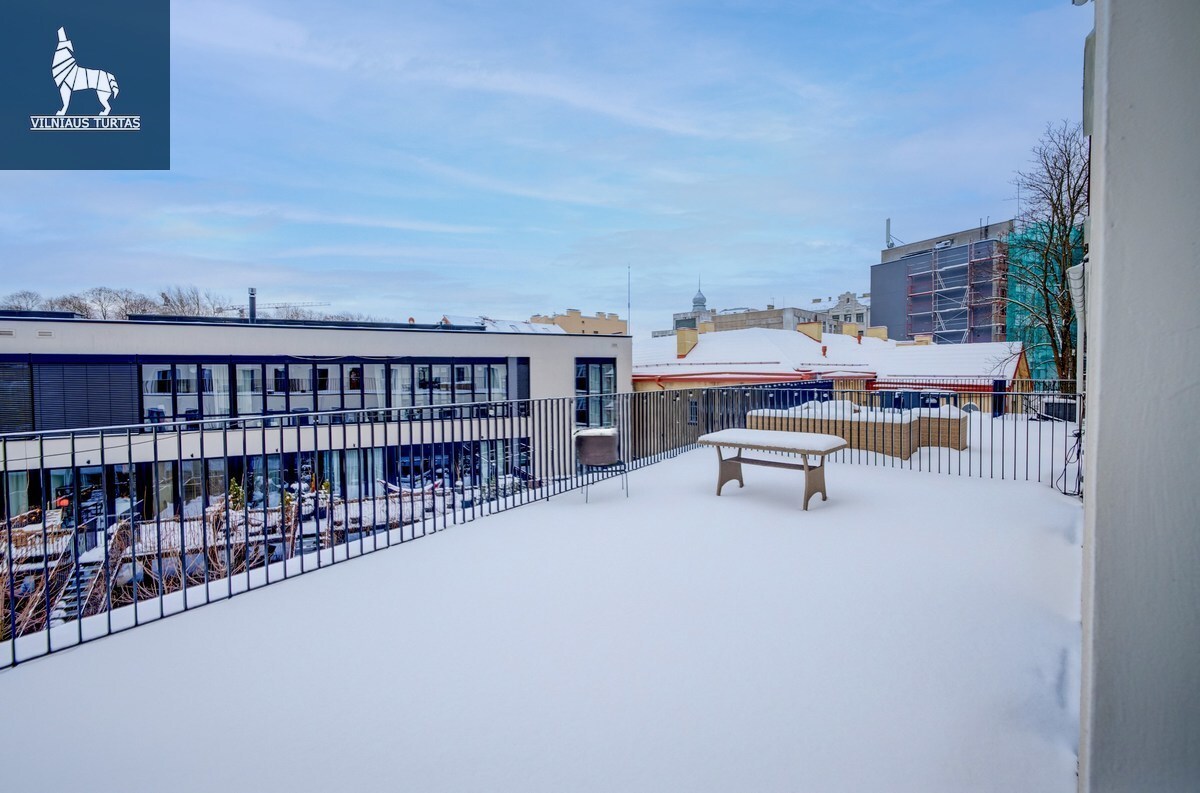 Didžiausias šio būsto išskirtinumas – 50 kv. m terasa. Iš jos atsiveria nuostabus Vilniaus Senamiesčio stogų vaizdas – vieta rytinei kavai, vakariniams pokalbiams ar draugų susitikimams.