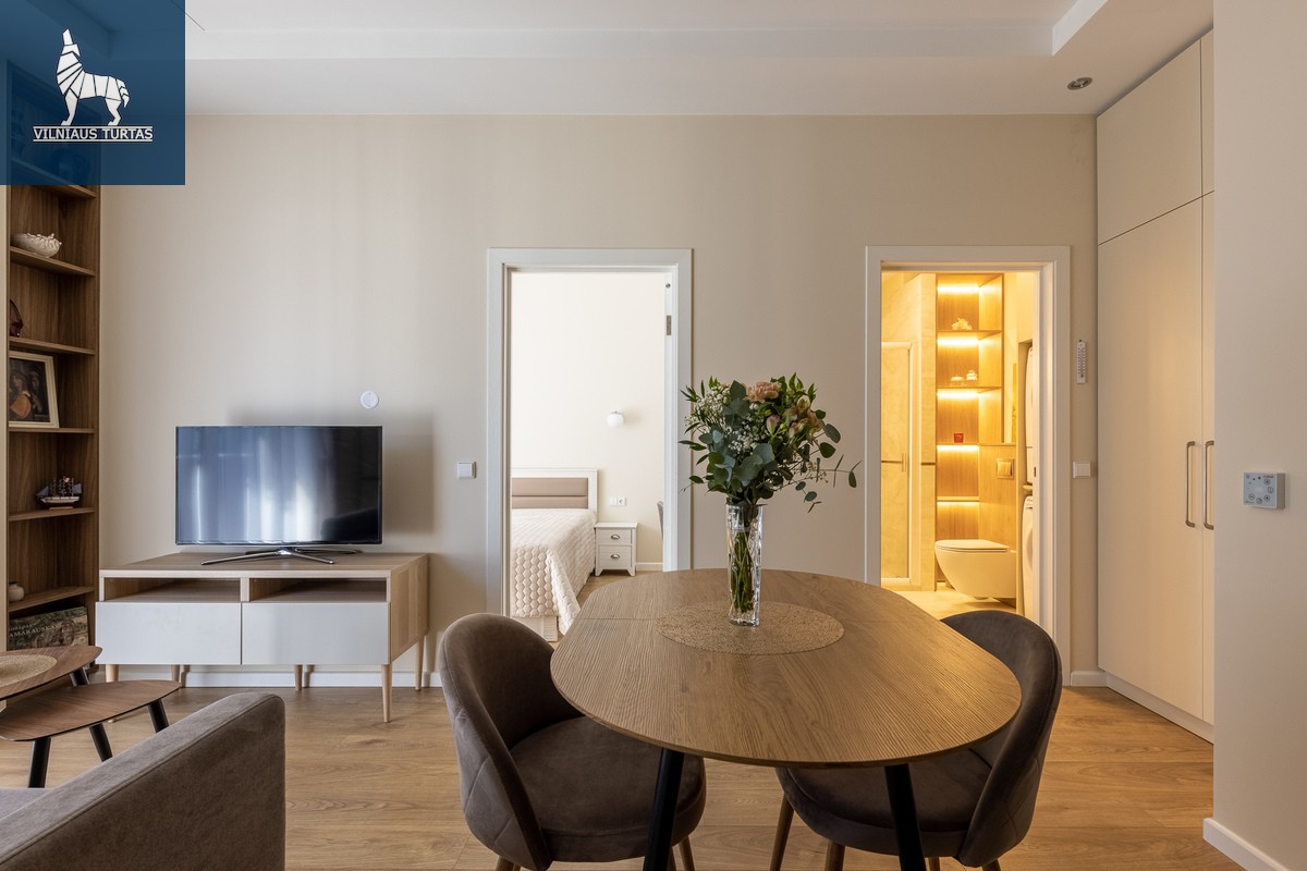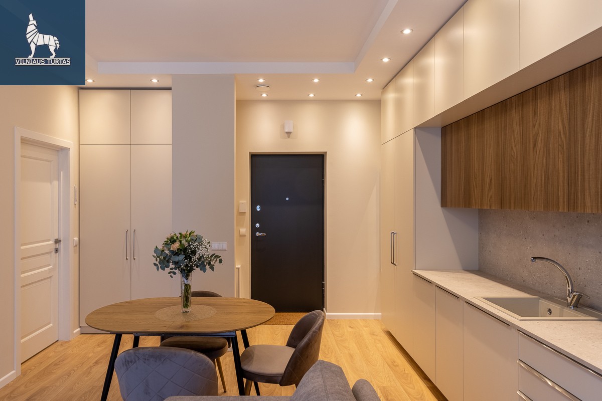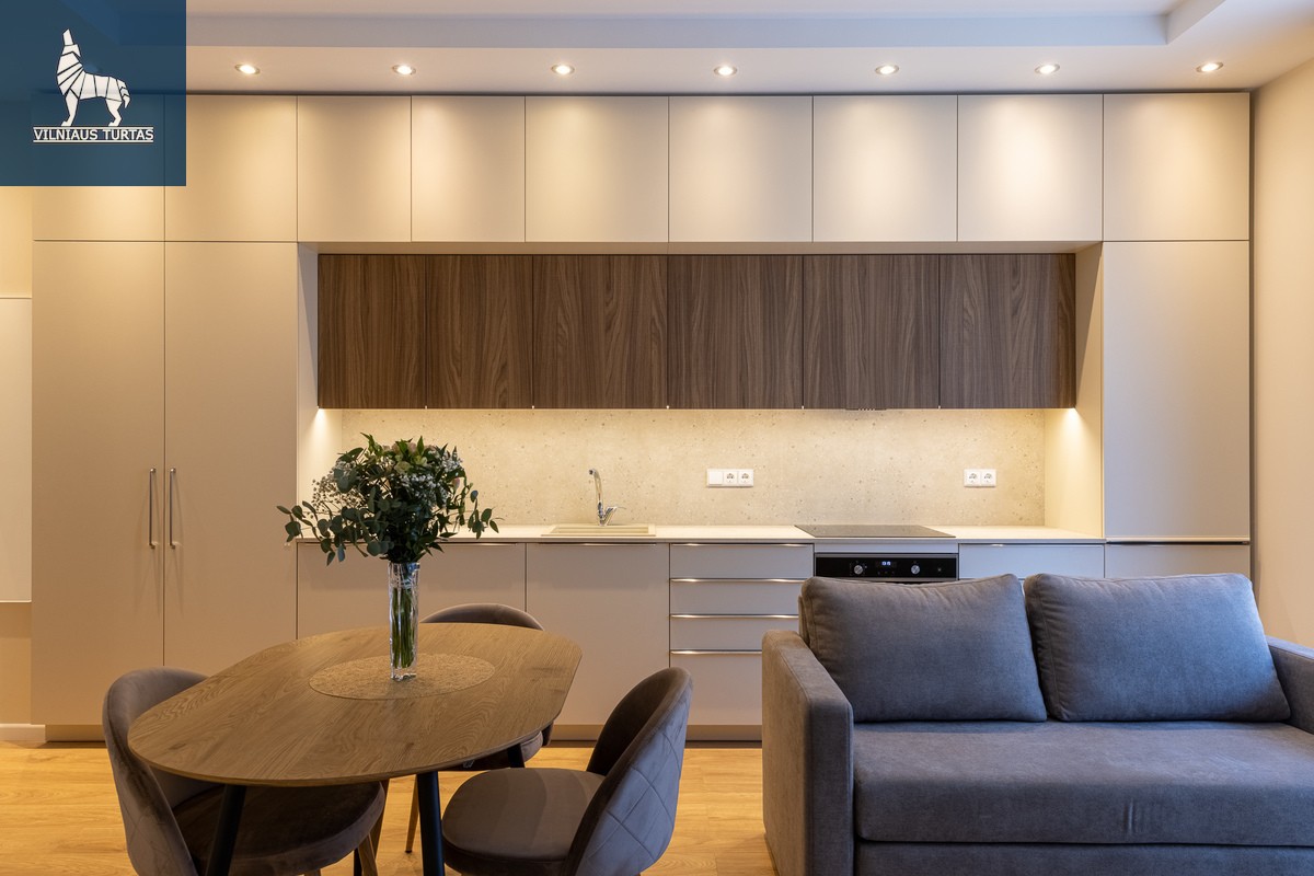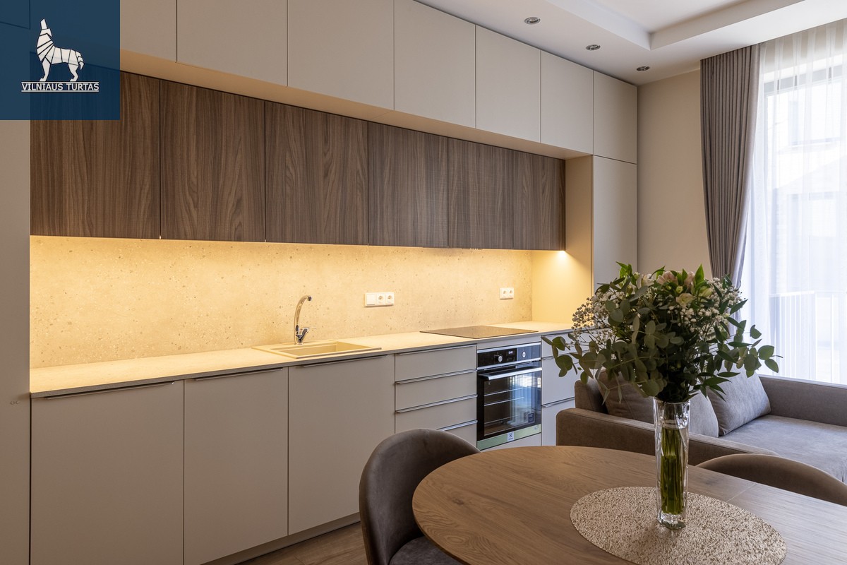 Nuomojamas išskirtinio interjero 2 kambarių butas naujame projekte „Renesansas“ – pačioje Senamiesčio širdyje, vos 700 m iki Rotušės aikštės, šalia stoties, Halės turgaus, kultūros ir pramogų erdvių.