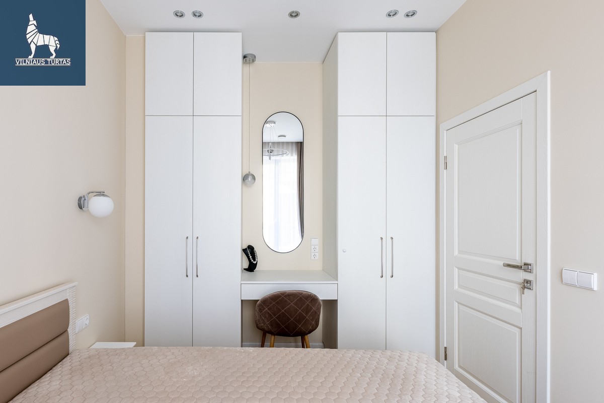 -Miegamasis: didelė lova, 2 spintos, kosmetinis staliukas, šviesos nepraleidžiančios užuolaidos, zonavimas apšvietimu;