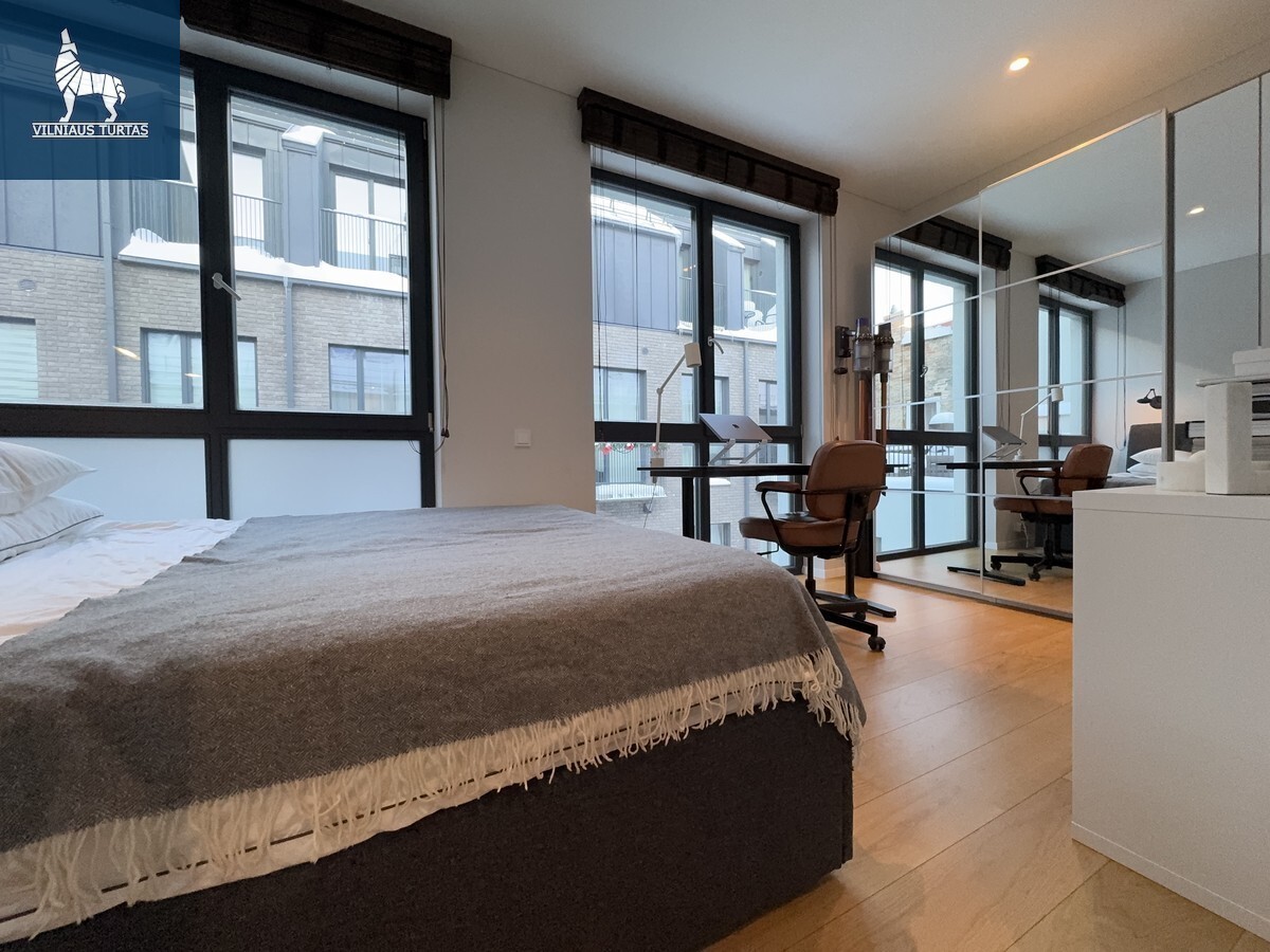 Vos įžengus pajusite erdvę, šviesą ir kokybę – aukštos lubos, vitrininiai langai, natūralaus medžio grindys, subtilūs apšvietimo sprendimai ir itin harmoningas interjeras kuria ramybės bei prabangos pojūtį.