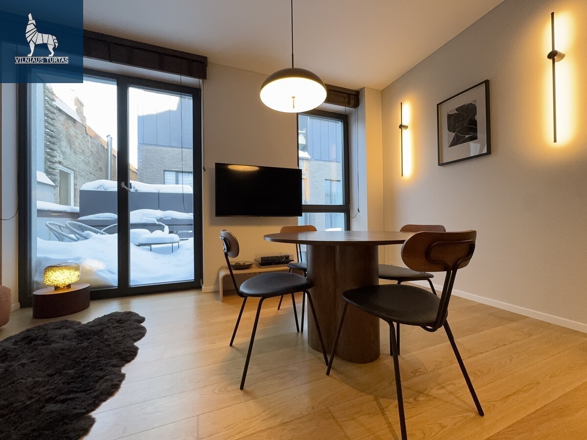 Vilniaus Senamiestyje nuomojamas išskirtinės kokybės, architektūriškai modernus ir itin jaukus 2 kambarių butas su terasa, ir premium klasės įrengimu. Tai būstas žmonėms, kurie vertina estetiką, komfortą ir prestižinę lokaciją.