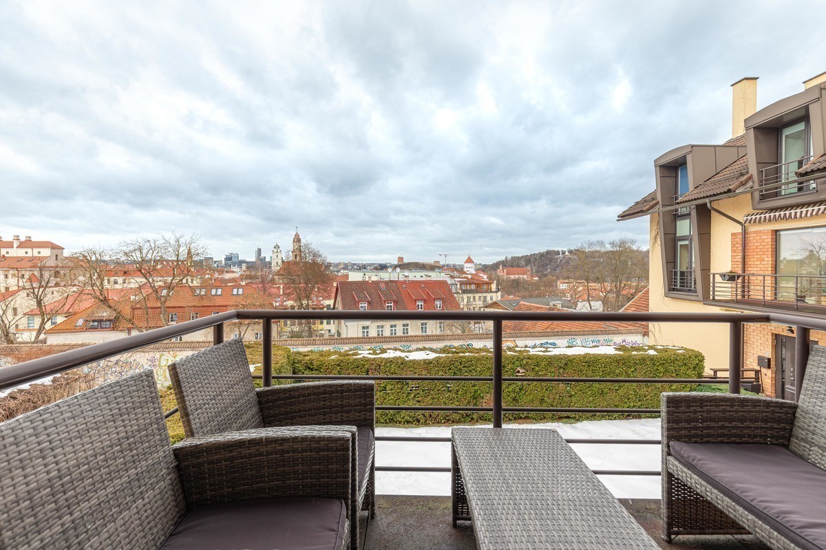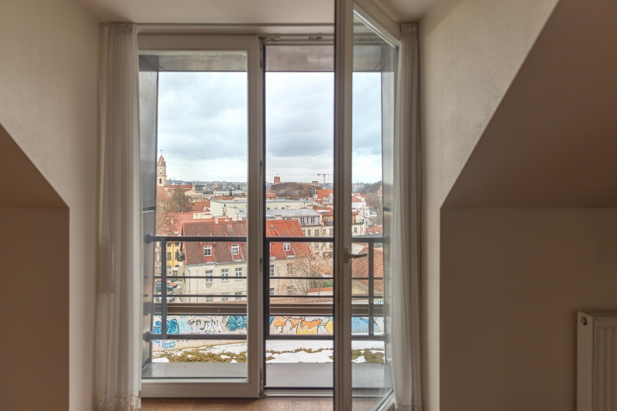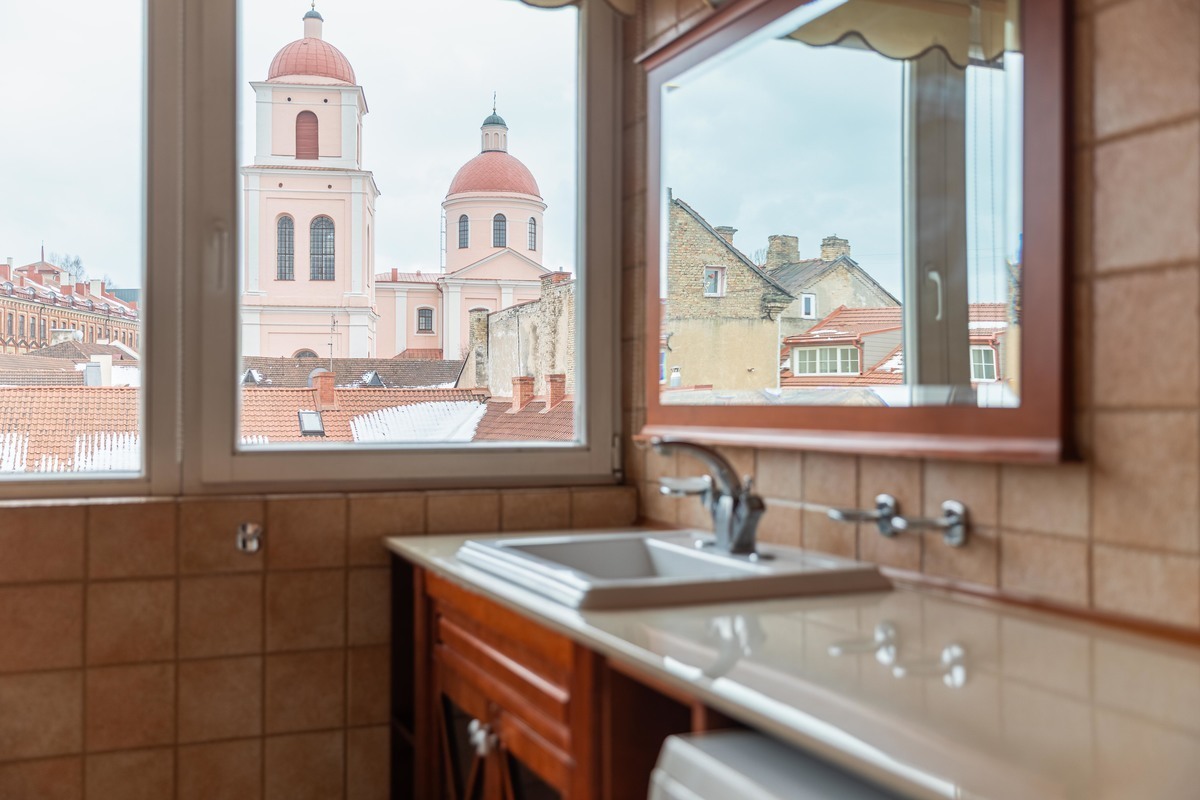 Tai namai, kuriuose kiekviena diena prasideda su vienu gražiausių Vilniaus vaizdų – Gedimino pilimi, iškilusia virš Senamiesčio stogų. Vaizdas, kuris niekada nepraranda savo žavesio: rytinė šviesa virš miesto bokštų, vakarinės Senamiesčio šviesos ir nuolat gyva miesto istorija, matoma tiesiog pro jūsų langus.