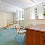 Funkcionaliai suplanuota erdvė: įrengta reprezentatyvi priėmimo zona su recepcija bei laukiamuoju klientams, šalia stiklinėmis pertvaromis suformuotas vadovo kabinetas, suteikiantis privatumą ir išskirtinumo pojūtį.