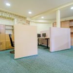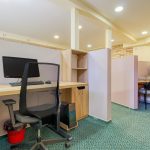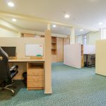 Kitoje dalyje išplanuotos darbo vietos, patogiai pritaikytos komandos darbui. Taip pat įrengta virtuvė, san. mazgas, su galimybe įrengti du atskirus sanitarinius mazgus (vyrų ir moterų).