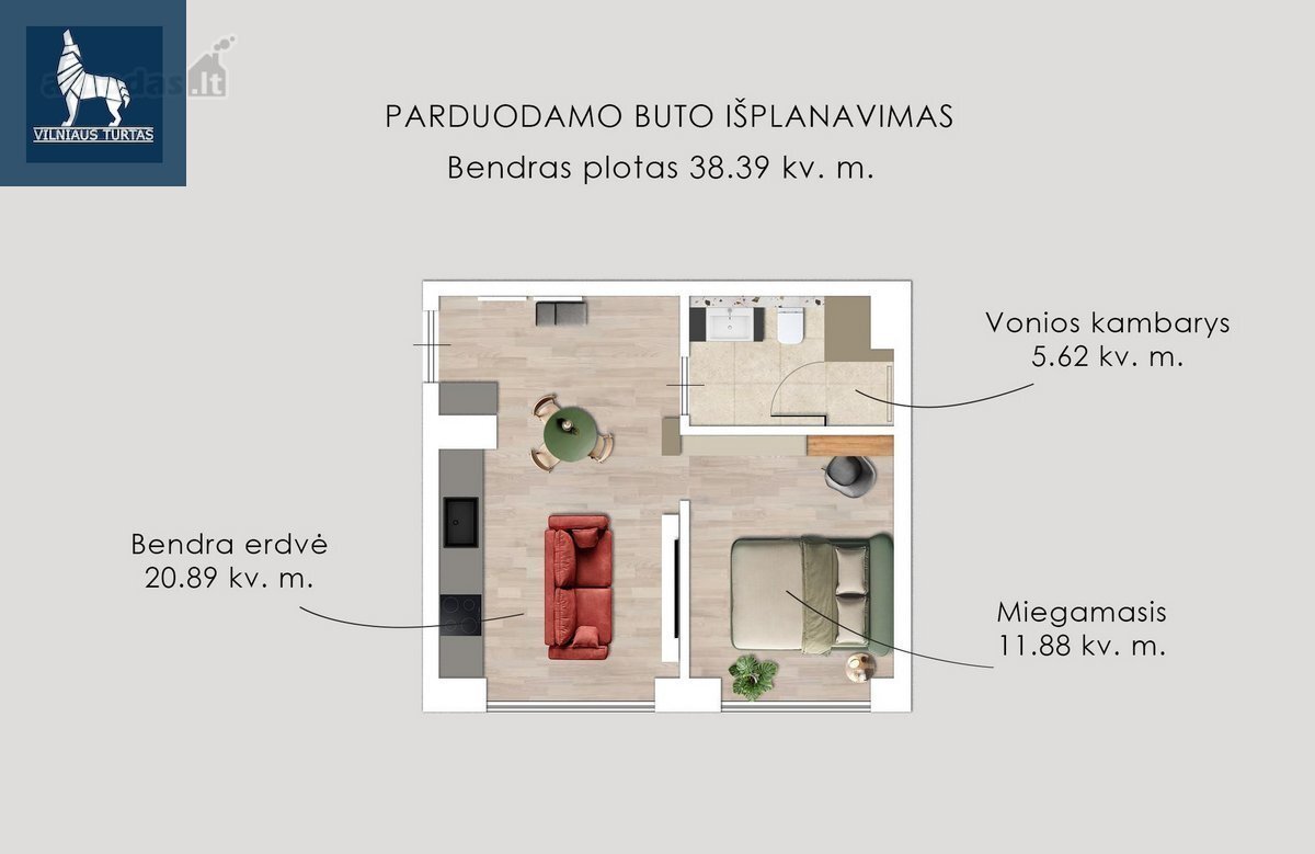 – Patogus išplanavimas – pilnai įrengta virtuvė, poilsio ir darbo zonos, erdvus vonios kambarys.
